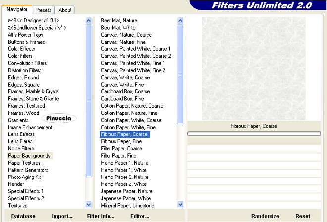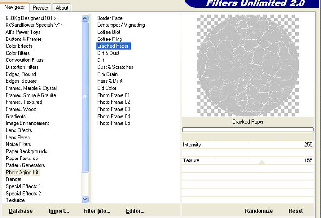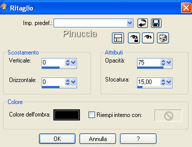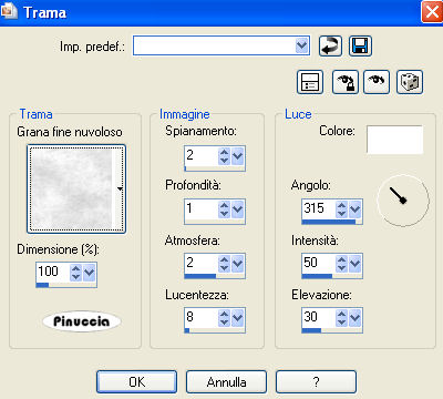 qui puoi trovare qualche risposta ai tuoi dubbi. Se l'argomento che ti interessa non è presente, ti prego di segnalarmelo. Questo tutorial è stato scritto con PSP Corel X2, ma può essere eseguito anche con le precedenti versioni. Per tradurlo, ho usato PSP X. Occorrente: Un tube a scelta. I tubes usati per i miei esempi sono di Nightangel e Cristaldor. Filtri: Filters Unlimited qui Photo Aging Kit qui Il filtro Photo Aging Kit si usa importandolo in Filters Unlimited. Come fare vedi qui 1. Apri una nuova immagine trasparente 750 x 750 pixels. Scegli 4 bei colori dal tuo tube. Io ho usato come colore di primo piano #F7317E, e come colore di sfondo #C0C0C0. Per gli altri colori ho scelto #3F3F3F e #FFFFFF. 2. Livelli>Nuovo livello raster. Attiva lo strumento Selezione , Cerchio,e traccia un cerchio di circa 285x285 pixels. Riempi la selezione con il colore di primo piano #F7317E.Selezione>Modifica>Contrai - 5 pixels. Premi sulla tastiera il tasto CANC ![]() Selezione>Modifica>Contrai - 5 pixels. Riempi con il colore #F7317E.Selezione>modifica>Contrai - 5 pixels. Premi sulla tastiera il tasto CANC. Selezione>Modifica>Contrai - 5 pixels. Riempi con il colore #F7317E.Continua così finchè non rimarrà spazio libero. Selezione>Deseleziona. Livelli>Duplica. Immagine>Rifletti. Immagine>Capovolgi. ![]() Effetti>Effetti 3D>Sfalsa ombra, con i seguenti settaggi, su entrambi i livelli dei cerchi. ![]() 3. Livelli>Nuovo livello raster. Attiva lo strumento Selezione , Cerchio,e traccia un cerchio di circa 510x510 pixels. Riempi la selezione con il colore di primo piano #c0c0c0.Selezione>Modifica>Contrai - 10 pixels. Premi sulla tastiera il tasto CANC ![]() Selezione>Modifica>Contrai - 15 pixels. Riempi con il colore #c0c0c0.Selezione>modifica>Contrai - 10 pixels. Premi sulla tastiera il tasto CANC. Ripeti ancora una volta questo passaggio. Selezione>Deseleziona, e posiziona il livello come nell'esempio.![]() 4. Effetti>Effetti 3D>Sfalsa ombra, con i seguenti settaggi: ![]() 5. Livelli>Nuovo livello raster. Attiva lo strumento Selezione , Cerchio,e traccia un cerchio di circa 450x450 pixels. Riempi la selezione con il colore di sfondo #c0c0c0.Effetti>Plugins>Filters Unlimited - Photo Aging Kit - Cracked Paper, con i seguenti settaggi. ![]() Selezione>Deseleziona. Effetti>Effetti 3D>Sfalsa ombra, con i settaggi usati al punto 4. ![]() 6. Attiva il livello Raster 2 (il livello del cerchio in alto a destra), e trascinalo in cima. ![]() 7. Imposta il colore di primo piano con #3F3F3F. Livelli>Nuovo livello raster. Attiva lo strumento Selezione , Cerchio,e traccia un cerchio di circa 110x110 pixels. Riempi la selezione con il colore di primo piano #3f3f3f.Effetti>Effetti di trama>Trama, con i seguenti settaggi: ![]() Selezione>Deseleziona. Effetti>Effetti 3D>Sfalsa ombra, con i settaggi usati al punto 4. 8. Livelli>Duplica 3 volte, in modo da avere quattro piccoli cerchi. Disponi i quattro cerchi in alto a sinistra, come nell'esempio.Nella paletta dei livelli trascina il livello del cerchio inferiore sopra il livello di sfondo, e il livello copia di Raster 2, tra i due cerchi grigi. ![]() 9. Attiva il livello Raster 1 che dovrebbe essere ancora vuoto, e riempilo con il colore bianco #ffffff.Effetti>Plugins>Filters Unlimited - Paper Background- Fibrous Paper - Coarse, con i seguenti settaggi: ![]() 10. Attiva il tuo tube e vai a Modifica>copia. Torna al tuo lavoro e vai a Modifica>Incolla come nuovo livello. Effetti>Effetti 3D>Sfalsa ombra, con i seguenti settaggi. ![]() 11. Attiva lo strumento Testo ![]() e scrivi il tuo nome o un testo sull'immagine. Se voi, aggiungi il tuo watermark. Effetti>effetti 3D>sfalsa ombra, come al punto 4. ![]() 12. Selezione>Seleziona tutto. Selezione>Modifica>Contrai - 10 pixels. Livelli>Nuovo livello raster. Effetti>Effetti 3D>Ritaglio, con i seguenti settaggi. ![]() Selezione>inverti. 13. Livelli>Nuovo livello raster. Riempi con il colore #F7317E.Effetti>Effetti 3D>Smusso a incasso, con i seguenti settaggi. ![]() Selezione>Deseleziona. Hai finito. Salva in formato jpg.