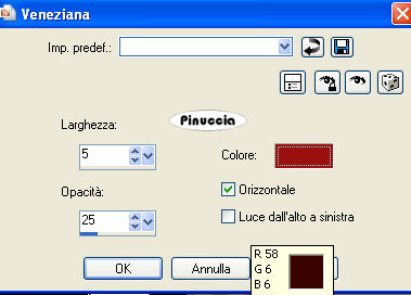 Effetti>Effetti di trama>Veneziana, con i seguenti settaggi:
