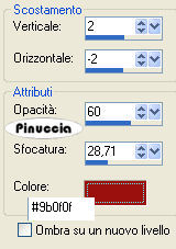 Effetti>Effetti 3D>Sfalsa ombra, con i seguenti settaggi, con il colore di primo piano: