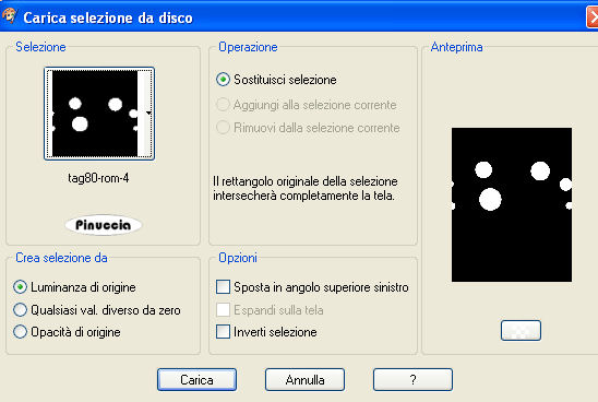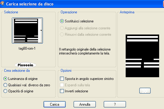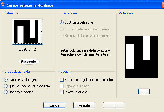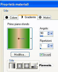 qui puoi trovare qualche risposta ai tuoi dubbi. Se l'argomento che ti interessa non è presente, ti prego di segnalarmelo. Questo tutorial è stato scritto con PSP Corel X2, ma può essere eseguito anche con le precedenti versioni. Per tradurlo, ho usato PSP X. Occorrente: Un tube a scelta. Il resto del materiale qui Il tube che ho usato è di Guismo. Metti la Maschera Beci_B_Mask_153 nella cartella Maschere, se vuoi conservarla, ma aprila in PSP e minimizzala nella tua area di lavoro. Metti le Selezioni nella cartella Selezioni. 1. Apri una nuova immagine trasparente 550 x 700 pixels. Scegli due colori dal tuo tube. Imposta il colore chiaro come colore di primo piano (il mio #F1BFA1), e il colore scuro come colore di sfondo (il mio #148900). Passa il colore di primo piano a Gradiente di primo piano/sfondo con i seguenti settaggi: ![]() 2. Riempi l'immagine trasparente con il colore scuro di sfondo.Livelli>Nuovo livello raster. Riempi il livello con il colore di primo piano.Livelli>Nuovo livello maschera>Da immagine. Apri il menu sotto la finestra di origine e vedrai la lista dei files aperti. Seleziona la maschera Beci_B_Mask_153 con i seguenti settaggi: ![]() Livelli>Elimina e rispondi sì alla domanda Unire la maschera nel livello corrente. ![]() Livelli>Unisci>Unisci gruppo. 3. Livelli>Nuovo livello raster. Selezione>Carica/Salva selezione>Carica selezione da disco. Cerca e carica la selezione "tag80-rom-1": ![]() Riempi la selezione con il gradiente.Selezione>Deseleziona. 4. Effetti>Effetti 3D>Sfalsa ombra: ![]() 5. Livelli>Nuovo livello raster. Selezione>Carica/Salva selezione>Carica selezione da disco. Cerca e carica la selezione "tag80-rom-2": ![]() Riempi la selezione con il gradiente.Abbassa l'opacità di questo livello al 55%. Selezione>Deseleziona. Effetti>Effetti 3D>Sfalsa ombra, come al punto 4. 6. Livelli>Nuovo livello raster. Selezione>Carica/Salva selezione>Carica selezione da disco. Cerca e carica la selezione "tag80-rom-3": ![]() Riempi la selezione con il gradiente.Abbassa l'opacità di questo livello al 50%. Selezione>Deseleziona. Effetti>Effetti 3D>Sfalsa ombra, come al punto 4. 7. Livelli>Nuovo livello raster. Selezione>Carica/Salva selezione>Carica selezione da disco. Cerca e carica la selezione "tag80-rom-4": ![]() Riempi la selezione con il colore scuro di sfondo.Abbassa l'opacità di questo livello al 50%. Selezione>Deseleziona. Effetti>Effetti 3D>Sfalsa ombra, come al punto 4. 8. Se tutto è andato bene, dovresti avere questo (ho chiuso i livelli di sfondo per visualizzare meglio l'esempio). ![]() 9. Apri il tuo tube e vai a Modifica>Copia. Torna al tuo lavoro e vai a Modifica>Incolla come nuovo livello. Posiziona come ti sembra meglio.Effetti>Effetti 3D>Sfalsa ombra, con i seguenti settaggi: ![]() 10. Attiva lo strumento Testo , scegli un font e scrivi il tuo nome o un testo.Se vuoi, aggiungi il tuo watermark. 11. Immagine>Aggiungi bordatura, 5 pixels, simmetriche, con il colore #F1BFA1. Immagine>Aggiungi bordatura, 5 pixels, simmetriche, con il colore #148900. Immagine>Aggiungi bordatura, 5 pixels, simmetriche, con il colore #F1BFA1. Hai finito. Puoi salvare in formato jpg. Se hai problemi o dubbi, o trovi un link non funzionante, o anche soltanto per un saluto, scrivimi. 9 Novembre 2008 |