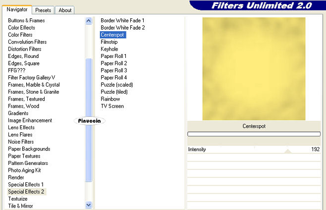 Effetti>Plugins>Filters Unlimited - Special Effects - Centerspot, 2 volte: