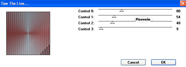 qui puoi trovare qualche risposta ai tuoi dubbi. Se l'argomento che ti interessa non è presente, ti prego di segnalarmelo. Questo tutorial è stato scritto con PSP Corel11, ma può essere eseguito anche con le precedenti versioni. Per tradurlo, ho usato PSP X. Occorrente: Materiale qui Il tube che ho usato è di Jet. Filtri: Tramages - Tow the line qui Metti le selezioni nella cartella Selezioni. 1. Apri una nuova immagine trasparente 600 x 600 pixels. Scegli due colori dal tuo tube. Io ho usato come colore di primo piano il colore scuro #7D3535, e come colore di sfondo il colore chiaro #8A939B. 2. Selezione>Carica/Salva selezione>Carica selezione da disco. Cerca e carica la selezione "tag-rom-01-7": ![]() Riempi la selezione con il colore scuro di primo piano.Selezione>Modifica>Contrai, 2 pixels. 3. Livelli>Nuovo livello raster. Riempi con il colore chiaro di sfondo.Effetti>Effetti di trama>Veneziana, con i seguenti settaggi. ![]() Abbassa l'opacità di questo livello al 70%. Livelli>Unisci>Unisci visibile. Effetti>Effetti 3D>Sfalsa ombra, con i seguenti settaggi: ![]() 4. Livelli>Duplica. Immagine>Ruota per gradi - 90 gradi a sinistra. ![]() Posiziona le strisce come nell'esempio.![]() 4. Livelli>Nuovo livello raster. Selezione>Carica/Salva selezione>Carica selezione da disco. Cerca e carica la selezione "tag-rom-02-7": ![]() Riempi la selezione con il colore scuro di primo piano.Effetti>Effetti 3D>Sfalsa ombra, con i settaggi precedenti (punto 3). Selezione>Deseleziona. 5. Livelli>Nuovo livello raster. Selezione>Carica/Salva selezione>Carica selezione da disco. Cerca e carica la selezione "tag-rom-03-7". ![]() Riempi la selezione con il colore scuro di primo piano.Selezione>Modifica>Contrai - 2 pixels. 6. Livelli>Nuovo livello raster. Riempi il livello con il colore chiaro di sfondo.Effetti>Effetti di trama>Veneziana, con i settaggi precedenti (punto 3). Abbassa l'opacità di questo livello al 70%. Chiudi gli altri livelli e lascia visibili questi ultimi due. Livelli>Unisci>Unisci visibile. Selezione>Deseleziona. Effetti>Effetti 3D>Sfalsa ombra, coni settaggi precedenti (punto 3). 7. Livelli>Nuovo livello raster. Passa il colore di primo piano a Gradiente, con i seguenti settaggi: ![]() Riempi il livello con il gradiente.Effetti>Plugins>Tramages - Tow the Line, con i seguenti settaggi: ![]() Livelli>Duplica. Immagine>Rifletti. Abbassa l'opacità di questo livello al 40%. Togli la visibilità agli altri livelli e lascia visibili soltanto questi ultimi due livelli. Livelli>Unisci>Unisci visibile. Livelli>Disponi>Porta sotto. 8. Apri i livelli chiusi e, se tutto è andato bene, dovresti avere questo: ![]() 9. Apri il tube "jet-joker-september2007", e vai a Modifica>Copia. Torna al tuo lavoro e vai a Modifica>Incolla come nuovo livello. Immagine>Ridimensiona, al 75%, tutti i livelli non selezionato. Sposta il tube nell'angolo in basso a destra.Effetti>Effetti 3D>Sfalsa ombra, con i settaggi precedenti (punto 3). 10. Apri il tube "CARDSQ". Attiva lo strumento Selezione ,e seleziona la prima carta. Modifica>Copia. Torna al tuo lavoro e vai a Modifica>Incolla come nuovo livello. Attiva nuovamente il tube delle carte, Selezione>Deseleziona e seleziona un'altra carta, e così via per tutte le carte che vorrai aggiungere alla tua tag. Non dimenticare di deselezionare, prima di selezionare la carta successiva. Quando hai finito di aggiungere le carte, unisci i livelli delle carte. Puoi, partendo dal livello più alto, andare a Livelli>Unisci>Unisci giù, e ripetere finchè le carte non saranno in un unico livello, oppure lasciare visibili soltanto questi livelli e andare a Livelli>Unisci>Unisci visibile. Effetti>Effetti 3D>sfalsa ombra, con i settaggi precedenti (punto 3). 11. Attiva lo strumento Testo e scrivi il tuo nome o un testo.Se vuoi, aggiungi il tuo watermark. 12. Immagine>Aggiungi bordatura, 1 pixel, simmetriche, con il colore #7D3535. Immagine>Aggiungi bordatura, 2 pixels, simmetriche, con il colore #8A939B. Immagine>Aggiungi bordatura, 1 pixel, simmetriche, con il colore #7D3535. Hai finito. Salva in formato jpg. ![]() Se hai problemi o dubbi, o trovi un link non funzionante, o anche soltanto per un saluto, scrivimi. 26 Maggio 2008 |