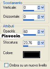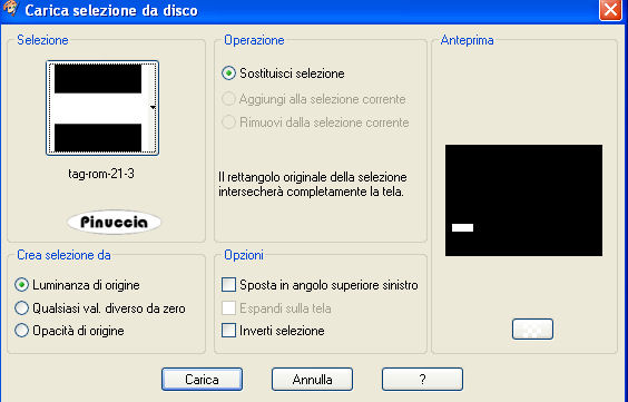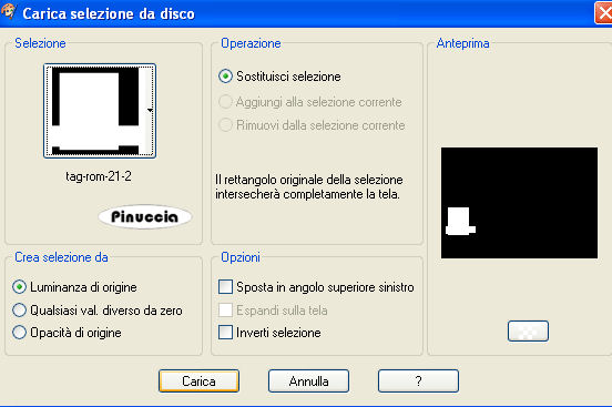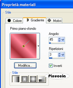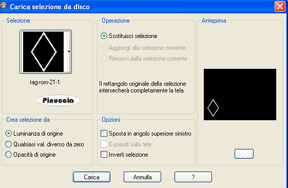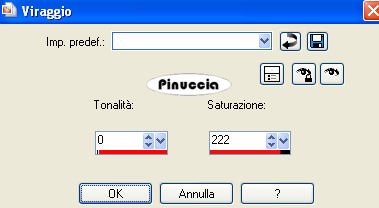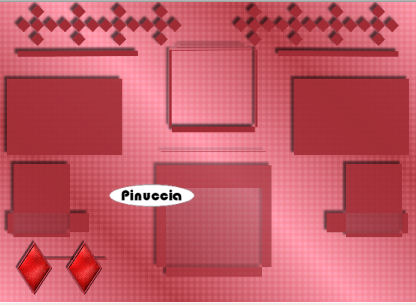 qui puoi trovare qualche risposta ai tuoi dubbi. Se l'argomento che ti interessa non è presente, ti prego di segnalarmelo. Questo tutorial è stato scritto con PSP Corel X2, ma può essere eseguito anche con le precedenti versioni. Per tradurlo, ho usato PSP X. Occorrente: Materiale qui Filtri: Penta.com - Color dot qui Metti le selezioni nella cartella Selezioni. 1. Apri una nuova immagine trasparente 700 x 500 pixels. Scegli due colori dal tuo tube. Io ho scelto come colore di primo piano il colore scuro #A12D36, e come colore di sfondo il colore chiaro #FF8497. Imposta il colore di primo piano anche con il Motivo "Abglass17" (nello zip). ![]() quando dovrai cambiare da motivo a colore, sarà sufficiente cliccare sul piccolo triangolino, ![]() e poi scegliere l'icona Motivo o Colore. ![]() ![]() 2. Livelli>Nuovo livello raster. Selezione>Carica/Salva selezione>Carica selezione da disco. Cerca e carica la selezione "Tag-rom-21-1". ![]() 3. Riempi la selezione con il colore scuro di primo piano.Effetti>Effetti 3D>Smusso a incasso: ![]() Selezione>Deseleziona. 4. Attiva lo strumento Bacchetta magica ![]() e clicca al centro del diamante. Selezione>Modifica>Espandi - 2 pixels. Livelli>Nuovo livello raster. Riempi la selezione con il motivo "ABglass17".Regola>Tonalità e Saturazione>Viraggio, con i seguenti settaggi: ![]() Effetti>Effetti 3D>Smusso a incasso, con i settaggi precedenti (punto 3). Selezione>Deseleziona. 5. Livelli>Disponi>Sposta giù. Attiva nuovamente il livello superiore. Livelli>Unisci>Unisci giù. Effetti>Effetti 3D>Sfalsa ombra, con i seguenti settaggi: ![]() Livelli>Duplica. Sposta le immagini come nell'esempio.![]() 6. Attiva lo strumento Penna , con i seguenti settaggi:![]() il colore di primo piano impostato sul rosso, traccia una linea come nell'esempio. ![]() Livelli>Converti in livello raster. Effetti>Effetti 3D>Sfalsa ombra, con i settaggi precedenti (punto 5). Livelli>Disponi>Sposta giù. Chiudi il livello di sfondo. Livelli>Unisci>Unisci visibile. Immagine>Ridimensiona, 3 volte all'80%, tutti i livelli non selezionato. Regola>Messa a fuoco>Metti a fuoco. 7. Livelli>Nuovo livello raster. Selezione>Carica/Salva selezione>Carica selezione da disco. Cerca e carica la selezione "Tag-rom-21-2": ![]() Riempi la selezione con il colore rosso di primo piano #A12D36.Selezione>Deseleziona. Abbassa l'opacità di questo livello al 90%. 8. Sullo stesso livello: Selezione>Carica/Salva selezione>Carica selezione da disco. Cerca e carica la selezione "Tag-rom-21-3": ![]() Premi una volta sulla tastiera il tasto CANC ![]() 9. Livelli>Nuovo livello raster. Riempi la selezione con il colore di primo piano.Abbassa l'opacità al 65%. Selezione>Deseleziona. Livelli>Unisci>Unisci giù. Livelli>Duplica. Immagine>Rifletti. Effetti>Effetti 3D>Sfalsa ombra, con i settaggi precedenti (punto 5) su entrambi i livelli. 10. Livelli>Nuovo livello raster. Selezoine>Carica/Salva selezione>Carica selezione da disco. Cerca e carica la selezione "Tag-rom-21-4", con i settaggi precedenti. ![]() Riempi la selezione con il colore rosso di primo piano #A12D36.Selezione>Deseleziona. Abbassa l'opacità di questo livello al 70%. 11. Sullo stesso livello. Selezione>Carica/Salva selezione>Carica selezione da disco. Cerca e carica la selezione "Tag-rom-21-5", con i settaggi precedenti. Premi sulla tastiera il tasto CANC. 12. Livelli>Nuovo livello raster. Riempi con il colore rosso di primo piano #A12D36.Selezione>Deseleziona. Abbassa l'opacità al 40%. Livelli>Unisci>Unisci giù. Effetti>Effetti 3D>Sfalsa ombra, con i settaggi precedenti (punto 5). 13. Livelli>Nuovo livello raster. Selezione>Carica/Salva selezione>Carica selezione da disco. Cerca e carica la selezione "Tag-rom-21-6", con i settaggi precedenti. Riempi la selezione con il colore rosso di primo piano #A12D36.Selezione>Deseleziona. Abbassa l'opacità di questo livello al 90%. Livelli>Duplica. Immagine>Rifletti. Su entrambi i livelli: Effetti>Effetti 3D>Sfalsa ombra, con i settaggi precedenti (punto 5). 14. Livelli>Nuovo livello raster. Selezione>Carica/Salva selezione>Carica selezione da disco. Cerca e carica la selezione "Tag-rom-21-7", con i settaggi precedenti. Riempi la selezione con il colore rosso di primo piano #A12D36.Selezione>Deseleziona. Abbassa l'opacità di questo livello al 90%. Effetti>Effetti 3D>Sfalsa ombra, con i settaggi precedenti (punto 5). 15. Livelli>Nuovo livello raster. Selezione>Carica/Salva selezione>Carica selezione da disco. Cerca e carica la selezione "Tag-rom-21-8", con i settaggi precedenti. Riempi la selezione con il colore rosso di primo piano #A12D36.Selezione>Deseleziona. Effetti>Effetti 3D>Sfalsa ombra, con i settaggi precedenti (punto 5). 16. Livelli>Nuovo livello raster. Selezione>Carica/Salva selezione>Carica selezione da disco. Cerca e carica la selezione "Tag-rom-21-9", con i settaggi precedenti. Riempi la selezione con il colore rosso di primo piano #A12D36.Selezione>Deseleziona. Effetti>Effetti 3D>Sfalsa ombra, con i settaggi precedenti (punto 5). 17. Livelli>Nuovo livello raster. Selezione>Carica/Salva selezione>Carica selezione da disco. Cerca e carica la selezione "Tag-rom-21-10", con i settaggi precedenti. Riempi la selezione con il colore rosso di primo piano #A12D36.Selezione>Deseleziona. Effetti>Effetti 3D>Sfalsa ombra, con i settaggi precedenti (punto 5). 18. Attiva il livello di sfondo che dovrebbe essere ancora vuoto. Passa il colore di primo piano a Gradiente: ![]() Riempi il livello con questo gradiente.Effetti>Plugins>Penta.com - Color dot, con i settaggi standard: ![]() 19. Se tutto è andato bene, dovresti avere questo: ![]() 20. Attiva il livello superiore. Apri il tube "Imagezt652" e vai a Modifica>Copia. Torna al tuo lavoro e vai a Modifica>Incolla come nuovo livello. Adatta l'immagine alla dimensione del rettangolo in alto a sinistra. Puoi usare lo strumento Deformazione o Immagine>Ridimensiona. Cambia la modalità di miscelatura di questo livello in Luminanza (Esistente). 21. Apri i