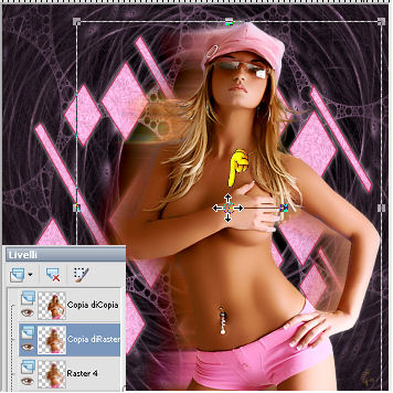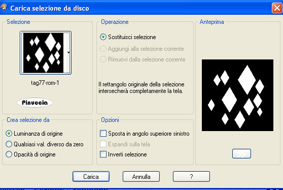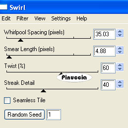 qui puoi trovare qualche risposta ai tuoi dubbi. Se l'argomento che ti interessa non è presente, ti prego di segnalarmelo. Questo tutorial è stato scritto con PSP Corel X2, ma può essere eseguito anche con le precedenti versioni. Per tradurlo, ho usato PSP X. Occorrente: Un tube a scelta. Il resto del materiale qui Il tube che ho usato è di Terry. Filtri: Eye Candy 4000 - Swirl qui Metti la Selezione nella cartella Selezioni. 1. Apri una nuova immagine trasparente 700 x 700 pixels. Scegli due colori dal tuo tube. Per seguire il mio esempio, imposta il colore di primo piano con il colore scuro #BF1846, e il colore di sfondo con il colore chiaro #FFB4E1. 2. Selezione>Seleziona tutto. Apri la trama "Fractal_098" e vai a Modifica>Copia. non chiuderla perchè ti servirà ancora. Torna al tuo lavoro e vai a Modifica>Incolla nella selezione. se stai usando altri colori usa il viraggio per cambiare il colore della trama. Sull'uso del Viraggio vedi qui Selezione>Deseleziona. 3. Livelli>Nuovo livello raster. Selezione>Carica/Salva selezione>Carica selezione da disco. Cerca e carica la selezione "tag77-rom-1": ![]() Riempi la selezione con il colore scuro di primo piano.4. Selezione>Modifica>Contrai - 2 pixels. Riempi con il colore chiaro di sfondo.Effetti>Plugins>Eye Candy 4000 - Swirl, con i seguenti settaggi: ![]() Selezione>Deseleziona. 5. Effetti>Effetti 3D>Sfalsa ombra, con i seguenti settaggi, colore bianco. ![]() 6. Livelli>Nuovo livello raster. Selezione>Carica/Salva selezione>Carica selezione da disco. Cerca e carica la selezione "tag77-rom-2": ![]() Riempi la selezione con il colore scuro di primo piano.7. Selezione>Modifica>Contrai - 2 pixels. Riempi con il colore chiaro di sfondo.Effetti>Plugins>Eye Candy 4000 - Swirl, come al punto 4. Selezione>Deseleziona. Effetti>Effetti 3D>Sfalsa ombra, come al punto 5. 8. Apri il tuo tube e vai a Modifica>Copia. Torna al tuo lavoro e vai a Modifica>Incolla come nuovo livello. Spostalo un po' più a destra.Livelli>Duplica, 2 volte. 9. Attiva il livello inferiore dei tre livelli del tube. Effetti>Effetti di distorsione>Vento - da destra - intensità 100. ![]() Regola>Sfocatura>Sfocatura gaussiana - raggio 10. ![]() 10. Attiva il livello centrale dei tre livelli del tube. Effetti>Effetti di distorsione>Vento, come al punto 9. Sposta leggermente il livello a sinistra.per spostare il livello senza togliere la visibilità a quello superiore, attiva lo strumento Puntatore ![]() ![]() e la griglia che apparirà intorno al tube ti servirà da guida per lo spostamento. Muovi il mouse sul centro e, quando vedrai l'icona dello strumento Spostamento , sposta il livello.Regola>Sfocatura>Sfocatura gaussiana - raggio 10. 11. Attiva lo strumento Testo e scrivi il to nome o un testo.Se vuoi aggiungi il tuo watermark. 12. Immagine>Aggiungi bordatura, 2 pixels, simmetriche, con il colore #000000. Immagine>Aggiungi bordatura, 35 pixels, simmetriche, con il colore #ffffff. Seleziona il bordo bianco con la bacchetta magica ![]() ![]() Attiva nuovamente la trama Fractal_098 e vai a Modifica>copia. Torna al tuo lavoro e vai a Modifica>Incolla nella selezione. Immagine>Rifletti. Immagine>Capovolgi. 13. Selezione>Inverti. Effetti>Effetti 3D>Sfalsa ombra, come al punto 5. Selezione>Deseleziona. 14. Immagine>Aggiungi bordatura, 2 pixels, simmetriche, con il colore #000000. Selezione>Seleziona tutto. Selezione>Modifica>Contrai - 2 pixels. Effetti>Effetti 3D>Ritaglio, con i seguenti settaggi: ![]() Selezione>Deseleziona. Hai finito. Salva in formato jpg. ![]() Se hai problemi o dubbi, o trovi un link non funzionante, o anche soltanto per un saluto, scrivimi. 10 Ottobre 2008 |