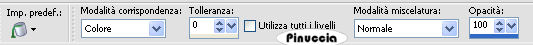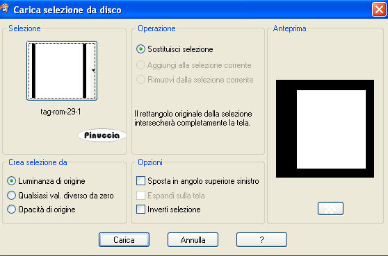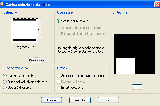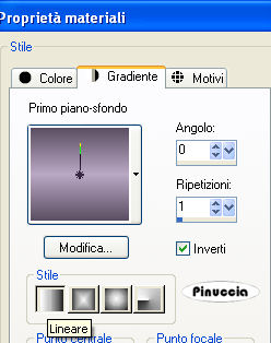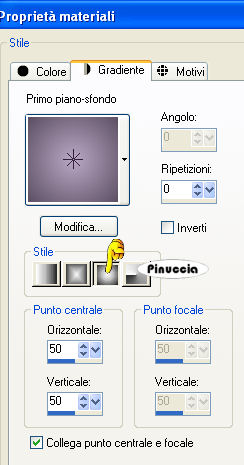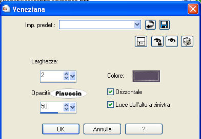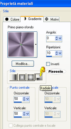 Se l'argomento che ti interessa non è presente, ti prego di segnalarmelo. Questo tutorial è stato scritto con PSP Corel X2, ma può essere eseguito anche con le precedenti versioni. Per tradurlo, ho usato PSP X. Occorrente: Materiale qui Filtri: Filters Unlimited qui Toadies - Banding Suppress Noise qui Toadies si usa importato in Filters Unlimited (come importare un filtro in Unlimited vedi qui ma funziona anche da solo Metti le Selezioni nella cartella Selezioni. 1. Apri una nuova immagine trasparente 600 x 600 pixels. Scegli due colori dal tuo tube. Io ho scelto come colore di primo piano il colore chiaro #BAA8C4, e come colore di sfondo il colore scuro #5B4E62. 2. Passa il colore di primo piano a Gradiente di primo piano/sfondo, con i seguenti settaggi: ![]() e passa il colore di sfondo a Gradiente di primo piano/sfondo, con i seguenti settaggi: ![]() 3. Selezione>Carica/Salva selezione>Carica selezione da disco. Cerca e carica la selezione "tag-rom-29-1", con i seguenti settaggi: ![]() Riempi la selezione con il colore scuro.per passare da gradiente a colore e viceversa, senza aprire la paletta dei materiali: clicca sul triangolino indicato dalla freccetta, ![]() e, dal menu che si aprirà, seleziona il colore o il gradiente, a seconda della necessità. ![]() 4. Effetti>Effetti di trama>Veneziana, con i seguenti settaggi, colore nero: ![]() Selezione>Deseleziona. 5. Effetti>Effetti 3D>Sfalsa ombra, con i seguenti settaggi, colore nero: ![]() 6. Livelli>Nuovo livello raster. Selezione>Carica/Salva selezione>Carica selezione da disco. Cerca e carica la selezione "tag-rom-29-2", con i settaggi precedenti. ![]() (questi settaggi saranno gli stessi per le prossime selezioni). Riempi la selezione con il gradiente di primo piano.Selezione>Modifica>Contrai - 1 pixel. 7. Livelli>Nuovo livello raster. Riempi la selezione con il gradiente di sfondo.Effetti>Plugins>Toadies - Banding Suppress Noise, con i seguenti settaggi: ![]() Selezione>Deseleziona. Effetti>Effetti 3D>Sfalsa ombra, con i settaggi usati al punto 5. 8. Livelli>Nuovo livello raster. Selezione>Carica/Salva selezione>Carica selezione da disco. Cerca e carica la selezione "tag-rom-29-3", con i settaggi usati al punto 3. Riempi la selezione con il colore scuro.Selezione>Modifica>Contrai - 3 pixels. 9. Cambia i settaggi del gradiente: ![]() Riempi la selezione con questo gradiente.Effetti>Effetti di trama>Veneziana, con i settaggi del punto 4. Selezione>Deseleziona. 10. Effetti>Effetti 3D>Sfalsa ombra, con i settaggi usati al punto 5. Livelli>Duplica. Sposta questo duplicato come nell'esempio:![]() 11. Livelli>Nuovo livello raster. Selezione>Carica/Salva selezione>Carica selezione da disco. Cerca e carica la selezione "tag-rom-29-4", con i settaggi usati al punto 3. Riempi la selezione con il gradiente usato al punto 9.Effetti>Plugins>Toadies - Banding Suppress Noise, con i settaggi del punto 7. Selezione>Deseleziona. Effetti>Effetit 3D>Sfalsa ombra, con i settaggi usati al punto 5. 12. Livelli>Nuovo livello raster. Selezione>Carica/Salva selezione>Carica selezione da disco. Cerca e carica la selezione "tag-rom-29-5", con i settaggi usati al punto 3. Riempi la selezione con il colore scuro.Selezione>Modifica>Contrai - 1 pixel. Riempi la selezione con il gradiente del punto 9.Selezione>Deseleziona. Effetti>Effetit 3D>Sfalsa ombra, come al punto 5. 13. Livelli>Nuovo livello raster. Selezione>Carica/Salva selezione>Carica selezione da disco. Cerca e carica la selezione "tag-rom-29-6"con i settaggi usati al punto 3. Riempi la selezione con il gradiente di sfondo.Effetti>Plugins>Toadies - Banding Suppress Noise, con i settaggi precedenti (punto 7). Selezione>Deseleziona. Effetti>Effetti 3D>Sfalsa ombra, con i settaggi precedenti (punto 5). 14. Livelli>Nuovo livello raster. Selezione>Carica/Salva selezione>Carica selezione da disco. Cerca e carica la selezione "tag-rom-29-7"con i settaggi usati al punto 3. Riempi la selezione con il colore scuro.Selezione>modifica>Contrai - 1 pixel. Riempi la selezione con il gradiente del punto 9.Selezione>Deseleziona. Effetti>Effetti 3D>Sfalsa ombra, con i settaggi precedenti (punto 5). 15. Livelli>Nuovo livello raster. Selezione>Carica/Salva selezione>Carica selezione da disco. Cerca e carica la selezione "tag-rom-29-8", con i settaggi usati al punto 3. Riempi la selezione con il gradiente di sfondo.Effetti>Plugins>Toadies - Banding Suppress Noise, con i settaggi precedenti (punto 7). Selezione>Deseleziona. Effetti>Effetti 3D>Sfalsa ombra, con i settaggi precedenti (punto 5). 16. Livelli>Nuovo livello raster. Selezione>Carica/Salva selezione>Carica selezione da disco. Cerca e carica la selezione "tag-rom-29-9"con i settaggi usati al punto 3. Riempi la selezione in basso a sinistra con il colore scuro,e la selezione al centro con il colore scuro. per riempire separatamente le due selezioni, assicurati che la modalità di corrispondenza dello strumento sia impostata su Colore: ![]() Selezione>Deseleziona. Effetti>Effetti 3D>Sfalsa ombra, con i settaggi precedenti (punto 5). 17. Se tutto è a posto, dovresti avere questo. ![]() 18. Livelli>Nuovo livello raster. Riempi il livello con il colore di sfondo.Livelli>Disponi>Porta sotto. 19. Apri il tube "Woman1", e vai a Modifica>Copia. Torna al tuo lavoro e vai a Modifica>Incolla come nuovo livello. Sposta il tube un po' più a destra, come nel mio esempio.Effetti>Effetti 3D>Sfalsa ombra, coni seguenti settaggi: ![]() 20. Attiva lo strumento Testo e scrivi il tuo nome o un testo,e aggiungi, se vuoi, il tuo watermark. 21. Immagine>Aggiungi bordatura, 10 pixels, simmetriche, con un colore qualsiasi purchè non sia presente nell'immagine. Attiva lo strumento Bacchetta magica ![]() ![]() e clicca sul bordo per selezionarlo. Riempi la selezione con il gradiente di primo piano usato al punto 2.Effetti>Effetti di trama>Veneziana, con i settaggi precedenti (punto 4). Effetti>Effetti 3D>Smusso a incasso, con i seguenti settaggi: ![]() Hai finito. Salva in formato jpg.