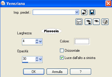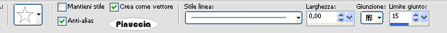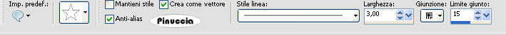qui puoi trovare qualche risposta ai tuoi dubbi. Se l'argomento che ti interessa non è presente, ti prego di segnalarmelo. Questo tutorial è stato scritto con PSP Corel 11, ma può essere eseguito anche con le precedenti versioni. Per tradurlo, ho usato PSP X. Occorrente: Materiale qui 1. Apri una nuova immagine trasparente 700 x 600 pixels. Scegli due colori dal tuo tube. Io ho scelto come colore di primo piano il colore scuro #B22F7F, e come colore di sfondo il colore bianco #FFFFFF. 2. Attiva lo strumento Selezione , rettangolo,e traccia un rettangolo come nell'esempio. ![]() Riempi la selezione con il colore scuro di primo piano.Effetti>Effetti di trama>Veneziana, con i seguenti settaggi: ![]() Selezione>Modifica>Contrai - 10 pixels. 3. Livelli>Nuovo livello raster. Passa il colore di primo piano a Gradiente, con i seguenti settaggi. ![]() Riempi con il gradiente.questo passaggio è una mia variante. Decidi tu se saltarlo o seguire il mio esempio. Regola>Sfocatura>sfocatura gaussiana, raggio 15. Effetti>Effetti di bordo>Aumenta di più. Effetti>Effetti 3D>Sfalsa ombra, con i seguenti settaggi: ![]() Selezione>Deseleziona. Attiva il livello inferiore e applica nuovamente l'Effetto Sfalsa ombra. 4. Attiva nuovamente il livello superiore. Attiva lo strumento Forme predefinite .e seleziona Stella 2 (standard in PSP), con i seguenti settaggi. ![]() passa il colore scuro a colore di sfondo e chiudi il colore di primo piano. ![]() Traccia la forma più o meno come nell'esempio. ![]() Livelli>Converti in Livello raster. Effetti>Effetti 3D>Sfalsa ombra, con i settaggi precedenti (punto 3). Sposta la stella nel rettangolo.5. Attiva nuovamente lo strumento Forme predefinite con gli stessi settaggi,e traccia una stella un po' più piccola. Livelli>Converti in livello raster. Effetti>Effetti 3D>Sfalsa ombra, con i settaggi precedenti (punto 3). Livelli>Duplica, per 4 volte e disponi le stelle pressappocco come nel mio esempio.![]() 6. Livelli>Unisci>Unisci visibile. Livelli>Duplica. Immagine>Ruota per gradi - 30 gradi a destra. ![]() Immagine>Ridimensiona, all'80%, tutti i livelli non selezionato. Sposta il rettangolo un po' più a destra, come nel mio esempio.![]() 7. Livelli>Nuovo livello raster. Attiva lo strumento Selezione , rettangolo,e disegna un piccolo rettangolo come nell'esempio: ![]() Riporta la posizione dei colori come all'inizio del tutorial. Riempi il rettangolo con il colore scuro di sfondo.fai attenzione, perchè per tracciare la stella hai portato il colore scuro a colore di sfondo. Effetti>Effetti di trama>Veneziana, con i settaggi precedenti (punto 2). Selezione>Modifica>Contrai - 5 pixels. 8. Livelli>Nuovo livello raster. Passa il colore di primo piano a Gradiente, come all'inizio del tutorial, e riempi la selezione con il gradiente.se hai seguito il mio esempio al punto 3: Regola>Sfocatura>Sfocatura gaussiana, raggio 15. Effetti>Effetti di bordo>Aumenta di più Effetti>Effetti 3D>Sfalsa ombra, con i settaggi precedenti (punto 3). Selezione>Deseleziona. 9. Attiva lo strumento Forme predefinite con i seguenti settaggi.![]() Riporta il colore di primo piano al colore scuro e chiudi il colore di sfondo. Traccia una stella nel piccolo rettangolo: ![]() Livelli>Converti in livello raster. Traccia al centro di questa stella una seconda stella: ![]() Puoi usare i nodi vettoriali della griglia per regolare dimensioni e posizione della stella. Livelli>Converti in livello raster. 10. Clicca sulla freccia al centro delle palette per portare il colore scuro a colore di sfondo. ![]() Traccia un'altra stella al centro delle precedenti: ![]() Livelli>Converti in livello raster. Chiudi i due livelli inferiori e rimani posizionato su un livello visibile. ![]() Livelli>Unisci>Unisci visibile. Immagine>ruota per gradi - 10 gradi a sinistra. ![]() Riapri i livelli chiusi e dovresti avere questo: ![]() 11. Livelli>Nuovo livello raster. Riempi con il colore bianco.Livelli>Disponi>Porta sotto. 12. Apri il tube "NitroComix_Bikergirl02_DzinzByD_", e vai a Modifica>Copia. Torna al tuo lavoro. Attiva il livello superiore e vai a Modifica>Incolla come nuovo livello. Immagine>Rifletti. Effetti>Effetti 3D>Sfalsa ombra, con i settaggi precedenti (punto 3). 13. Attiva lo strumento Testo ![]() e scrivi il tuo nome o un testo. Se vuoi, aggiungi il tuo watermark. 14. Immagine>Aggiungi bordatura, 1 pixel, simmetriche, con il colore #B22F7F. Immagine>Aggiungi bordatura, 3 pixels, simmetriche, con il colore #FFFFFF. Immagine>Aggiungi bordatura, 1 pixel, simmetriche, con il colore #B22F7F. ![]() 15. Modifica>Copia. Apri Animation Shop. Clicca con il tasto destro del mouse sullo spazio vuoto e Incolla come nuova animazione. ![]() Livelli>Duplica, e ripeti finchè non avrai un totale di 18 fotogrammi. Clicca sul primo fotogramma per selezionarlo e vai a Modifica>Seleziona tutto, (oppure premi sulla tastiera la combinazione di tasti Ctrl+E). Apri il file fornito con il materiale "bling-SEXY-romana" (anche questo composto da 18 fotogrammi). Clicca sul primo fotogramma per selezionarlo e vai a Modifica>Seleziona tutto (Ctrl+A). Poi Modifica>Copia (Ctrl+C). Torna al tuo lavoro e vai a Modifica>Incolla>Incolla nel fotogramma selezionato (ctrl+E). Posiziona l'animazione e, quando hai trovato la posizione corretta, rilascia il tasto del mouse. Controlla il risultato cliccando su Visualizza e salva in formato gif.![]() Se hai problemi o dubbi, o trovi un link non funzionante, o anche soltanto per un saluto, scrivimi. 28 Maggio 2008 |