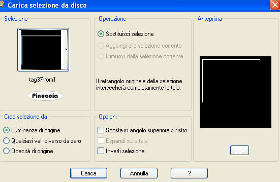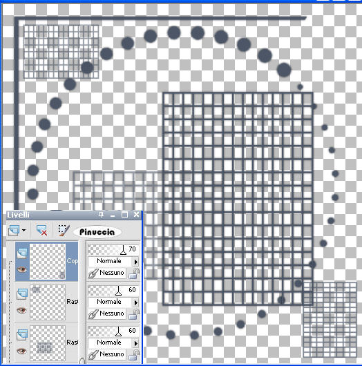 qui puoi trovare qualche risposta ai tuoi dubbi. Se l'argomento che ti interessa non è presente, ti prego di segnalarmelo. Questo tutorial è stato scritto con PSP Corel X2, ma può essere eseguito anche con le precedenti versioni. Per tradurlo, ho usato PSP X. Occorrente: Materiale qui Metti le Selezioni nella cartella Selezioni. 1. Apri una nuova immagine trasparente 650 x 650 pixels. Scegli tre colori dal tuo tube. Io ho usato come colore di primo piano il colore scuro #4C5667. Gli altri due colori sono il bianco #ffffff, e l'arancio #EC9E46. 2. Selezione>Carica/Salva selezione>Carica selezione da disco. Cerca e carica la selezione "tag37-rom1", con i seguenti settaggi: ![]() Riempi la selezione con il colore scuro di primo piano.Selezione>Deseleziona. 3. Effetti>Effetti 3D>Sfalsa ombra, con i seguenti settaggi: ![]() 4. Livelli>Nuovo livello raster. Selezione>Carica/Salva selezione>Carica selezione da disco. Cerca e carica la selezione "tag37-rom2", con i settaggi precedenti. ![]() (non ripeterò la schermata, che - a parte la progressione numerica - è la stessa per tutte le selezioni). Riempi la selezione con il colore scuro di primo piano.Selezione>Deseleziona. Effetti>Effetti 3D>Sfalsa ombra, con i settaggi precedenti (punto 3). 5. Livelli>Nuovo livello raster. Selezione>Carica/Salva selezione>Carica selezione da disco. Cerca e carica la selezione "tag37-rom3", con i settaggi precedenti. Riempi la selezione con il colore scuro di primo piano.Selezione>Deseleziona. Effetti>Effetti 3D>Sfalsa ombra, con i settaggi precedenti (punto 3). 6. Livelli>Nuovo livello raster. Selezione>Carica/Salva selezione>Carica selezione da disco. Cerca e carica la selezione "tag37-rom4", con i settaggi precedenti. Riempi la selezione con il colore scuro di primo piano.Selezione>Deseleziona. Abbassa l'opacità di questo livello al 60%. Effetti>Effetti 3D>Sfalsa ombra, con i settaggi precedenti (punto 3). 7. Livelli>Nuovo livello raster. Selezione>Carica/Salva selezione>Carica selezione da disco. Cerca e carica la selezione "tag37-rom4", con i settaggi precedenti. Riempi la selezione con il colore scuro di primo piano.Selezione>Deseleziona. Effetti>Effetti 3D>Sfalsa ombra, con i settaggi precedenti (punto 3). Immagine>Ridimensiona, al 50%, tutti i livelli non selezionato. Spostalo in alto a sinistra, sulla selezione 1, come nel mio esempio.8. Livelli>Duplica. Immagine>Ruota per gradi - 90 gradi a destra. ![]() Spostalo in basso a destra, vedi il mio esempio.Abbassa l'opacità del livello superiore al 70%, e quella del livello inferiore al 60%. ![]() 9. Livelli>Nuovo livello raster. Selezione>Carica/Salva selezione>Carica selezione da disco. Cerca e carica la selezione "tag37-rom5", con i settaggi precedenti. Riempi la selezione con il colore scuro di primo piano.Selezione>Deseleziona. Effetti>Effetti 3D>Sfalsa ombra, con i settaggi precedenti (punto 3). 10. Livelli>Nuovo livello raster. Selezione>Carica/Salva selezione>Carica selezione da disco. Cerca e carica la selezione "tag37-rom6", con i settaggi precedenti. Riempi la selezione con il colore scuro di primo piano.Selezione>Deseleziona. Effetti>Effetti 3D>Sfalsa ombra, con i settaggi precedenti (punto 3). Con il colore scuro impostato come colore di primo piano e il bianco come colore di sfondo, passa il colore di primo piano a Gradiente di primo piano/sfondo, con i seguenti settaggi. ![]() Riempi la selezione con questo gradiente.Selezione>Deseleziona. Abbassa l'opacità di questo livello all'80%. Effetti>Effetti 3D>Sfalsa ombra, con i settaggi precedenti (punto 3). 11. Livelli>Nuovo livello raster. Selezione>Carica/Salva selezione>Carica selezione da disco. Cerca e carica la selezione "tag37-rom7", con i settaggi precedenti. Riempi la selezione con il colore scuro di primo piano.Selezione>Deseleziona. Effetti>Effetti 3D>Sfalsa ombra, con i settaggi precedenti (punto 3). 12. Livelli>Nuovo livello raster. Selezione>Carica/Salva selezione>Carica selezione da disco. Cerca e carica la selezione "tag37-rom8", con i settaggi precedenti. Riempi la parte superiore con il colore scuro di primo piano,e la parte inferiore con il colore di sfondo bianco. Selezione>Deseleziona. Effetti>Effetti 3D>Sfalsa ombra, con i settaggi precedenti (punto 3). 13. Livelli>Nuovo livello raster. Selezione>Carica/Salva selezione>Carica selezione da disco. Cerca e carica la selezione "tag37-rom9", con i settaggi precedenti. Riempi la selezione con il colore scuro di primo piano.Selezione>Deseleziona. Abbassa l'opacità di questo livello al 50%. Nella paletta dei livelli trascina al livello inferiore. Effetti>Effetti 3D>Sfalsa ombra, con i settaggi precedenti (punto 3). 14. Attiva il livello superiore. Apri il tube della donna e vai a Modifica>copia. Torna al tuo lavoro e vai a Modifica>Incolla come nuovo livello. Immagine>Ridimensiona, al 90%, tutti i livelli non selezionato. Spostalo un po' più a destra.Effetti>Effetti 3D>Sfalsa ombra, con i seguenti settaggi. ![]() 15. Livelli>Nuovo livello raster. Riempi questo livello con il bianco.Livelli>Disponi>Porta sotto. 16. Livelli>Nuovo livello raster. Imposta il colore di primo piano con #EC9E46, e il colore di sfondo con il bianco #FFFFFF. Passa il colore di primo piano a Gradiente di primo piano/sfondo: ![]() Riempi il livello con questo gradiente.Regola>Sfocatura>Sfocatura gaussiana, raggio 15. ![]() Effetti>Effetti di distorsione>Mulinello, con i seguenti settaggi: ![]() 17. Immagine>Aggiungi bordatura, 2 pixels, simmetriche, con il colore #4C5667. Immagine>Aggiungi bordatura, 25 pixels, simmetriche, con il colore #FFFFFF. Immagine>Aggiungi bordatura, 2 pixels, simmetriche, con il colore #4C5667 18. Attiva lo strumento Bacchetta magica ![]() ![]() e clicca sul bordo bianco per selezionarlo. Effetti>Effetti di trama>Trama, seleziona la trama Grana lunga intensa, (standard in PSP), con i seguenti settaggi: ![]() Selezione>Deseleziona. 19. Attiva lo strumento Testo ![]() e scrivi il tuo nome o un testo. Se vuoi, aggiungi il tuo wat