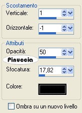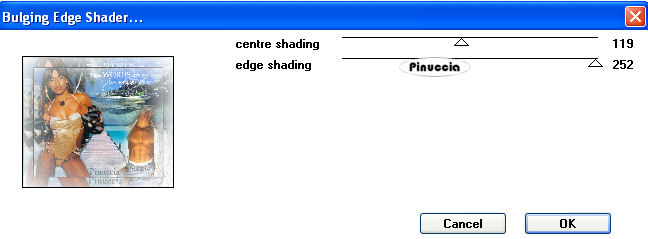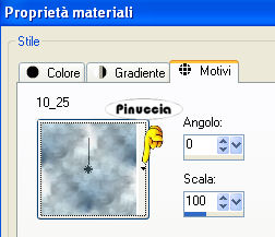 qui puoi trovare qualche risposta ai tuoi dubbi. Se l'argomento che ti interessa non è presente, ti prego di segnalarmelo. Questo tutorial è stato scritto con PSP Corel 11, ma può essere eseguito anche con le precedenti versioni. Per tradurlo, ho usato PSP X. Occorrente: Materiale qui Metti il pennello nella cartella Pennelli. Attenzione, il pennello è composto da due files che non devono essere separati. Vedi gli appunti sui pennelli qui. Filtri: Filters Factory Gallery N (nello zip) I filtri Factory Gallery per essere usati devono prima essere convertiti. Come fare vedi qui Per usarli si possono importare in Filters Unlimited, ma funzionano anche da soli 1. Apri una nuova immagine trasparente 650 x 550 pixels. 2. Apri il tube PAY-JLL2007-33, e vai a Modifica>Copia. Torna al tuo lavoro e vai a Modifica>Incolla come nuovo livello. Sposta il tube in basso.3. Apri il tube PAY-JLL-2007-34, e vai a Modifica>Copia. Torna al tuo lavoro e vai a Modifica>Incolla come nuovo livello. Sposta il tube in alto a destra.4. Apri il tube PAY-JLL2007-35, e vai a Modifica>Copia. Torna al tuo lavoro e vai a Modifica>Incolla come nuovo livello. Immagine>Rifletti. Sposta il tube in alto a sinistra.![]() 5. Apri il tube "pasha_4_tubedbymaigcal", e vai a Modifica>Copia. Torna al tuo lavoro e vai a Modifica>Incolla come nuovo livello. Immagine>Ridimensiona, al 92%, tutti i livelli non selezionato. Sposta il tube a sinistra.Effetti>Effetti 3D>Sfalsa ombra, con i seguenti settaggi. ![]() 6. Apri il tube "mannrom", e vai a Modifica>Copia. Torna al tuo lavoro e vai a Modifica>Incolla come nuovo livello. Immagine>Ridimensiona, al 70%, tutti i livelli non selezionato. Sposta il tube in basso a destra, vedi il mio esempio.7. Livelli>Nuovo livello raster. Imposta il colore di primo piano con il bianco. Attiva lo strumento Pennello ![]() cerca e seleziona il pennello Heartword, e applicalo in alto a destra, cliccando con il tasto sinistro del mouse per usare il colore di primo piano. 8. Attiva il livello Raster 1. Apri il motivo 10_25, e minimizzalo. Passa il colore di primo piano a Motivi e seleziona il motivo 10.25 con i seguenti settaggi: ![]() Riempi il livello con questo motivo.9. Attiva lo strumento Testo ![]() e scrivi il tuo nome o un testo sull'immagine. Se vuoi, aggiungi il tuo watermark. 10. Immagine>Aggiungi bordatura, 2 pixels, simmetriche, con il colore nero #000000. Modifica>Copia. Immagine>Aggiungi bordatura, 50 pixels, simmetriche, con il colore bianco #ffffff. Seleziona questo bordo con la bacchetta magica ![]() ![]() Modifica>Incolla nella selezione. Effetti>Plugins>Filter Factory Galleri N - Bulging Edge Shader: ![]() 11. Selezione>Inverti. Effetti>Effetti 3D>sfalsa ombra, con i seguenti settaggi: ![]() Selezione>Deseleziona. 12. Immagine>Aggiungi bordatura, 2 pixels, simmetriche, con il colore nero #000000. Hai finito. Salva in formato jpg. ![]() Se hai problemi o dubbi, o trovi un link non funzionante, o anche soltanto per un saluto, scrivimi. 3 Luglio 2008 |
