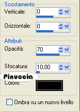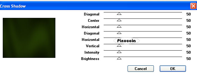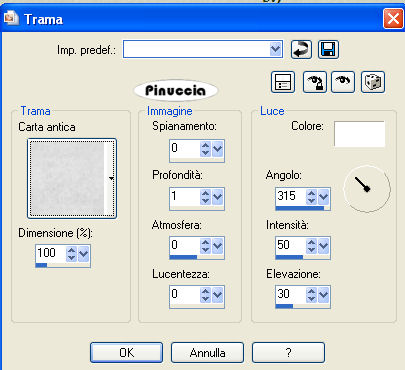 qui puoi trovare qualche risposta ai tuoi dubbi. Se l'argomento che ti interessa non è presente, ti prego di segnalarmelo. Questo tutorial è stato scritto con PSP Corel 11, ma può essere eseguito anche con le precedenti versioni. Per tradurlo, ho usato PSP X. Occorrente: Tube di una donna, di un paesaggio e di una decorazione a scelta. Il resto del materiale qui Metti le Selezioni nella cartella Selezioni. Filtro: Graphics Plus qui 1. Apri una nuova immagine trasparente 850 x 650 pixels. Scegli due colori dal tuo tube. Io ho scelto come colore di primo piano il colore chiaro #D1D4C2, e come colore di sfondo il colore scuro #1E3103. 2. Livelli>Nuovo livello raster. Selezione>Carica/Salva selezione>Carica selezione da disco. Cerca e carica la selezione "tag45-rom1": ![]() Riempi la selezione con il colore chiaro di primo piano.3. Effetti>Effetti di trama>Trama - seleziona la trama Carta Antica, con i seguenti settaggi. ![]() Selezione>Deseleziona. 4. Effetti>Effetti 3D>Sfalsa ombra: ![]() 5. Livelli>Duplica. Immagine>Rifletti. Immagine>Capovolgi. Dovresti avere questo: ![]() 6. Livelli>Nuovo livello raster. Selezione>Carica/Salva selezione>Carica selezione da disco. Cerca e carica la selezione "tag45-rom2": ![]() Riempi la selezione con il colore scuro di sfondo.Ripeti i passi 3 e 4. 7. Livelli>Duplica. Sposta le strisce a destra.Dovresti avere questo: ![]() 8. Livelli>Nuovo livello raster. Selezione>Carica/Salva selezione>Carica selezione da disco. Cerca e carica la selezione "tag45-rom3": ![]() Riempi la selezione con il colore chiaro di primo piano.9. Selezione>Modifica>Contrai - 5 pixels. Riempi con il colore scuro di sfondo.Selezione>Modifica>Contrai - 10 pixels. Riempi con il colore chiaro di primo piano.Dovresti avere questo: ![]() 10. Attiva il tube del paesaggio e vai a Modifica>Copia. Torna al tuo lavoro e vai a Modifica>Incolla come nuovo livello. Posizionalo nell'area della selezione.Selezione>Inverti. Premi sulla tastiera il tasto CANC. Selezione>Deseleziona. Livelli>Unisci>Unisci giù. Dovresti avere questo: ![]() Effetti>Effetti 3D>sfalsa ombra, come al punto 4. 11. Attiva il livello Raster 1 e riempilo con il colore scuro di sfondo.Effetti>Plugins>Graphics Plus - Cross Shadow, con i seguenti settaggi: ![]() 12. Attiva il livello superiore. Attiva il tuo tube della donna e vai a Modifica>Copia. Torna al tuo lavoro e vai a Modifica>Incolla come nuovo livello. Posiziona il tube adeguatamente.Effetti>Effetti 3D>Sfalsa ombra: ![]() 13. Apri il tube della decorazione e vai a Modifica>Copia. Torna al tuo lavoro e vai a Modifica>incolla come nuovo livello. Sposta la decorazione a sinistra.Effetti>Effetti 3D>Sfalsa ombra, come al punto 4. Livelli>Duplica. Immagine>Rifletti. Immagine>Capovolgi. 14. Attiva lo strumento Testo , scegli un font, e scrivi il tuo nome o un testo.Se vuoi, aggiungi il tuo watermark. Effetti>effetti 3D>sfalsa ombra, come al punto 4. 15. Immagine>Aggiungi bordatura, 2 pixels, simmetriche, con il colore chiaro #D1D4C2. Immagine>Aggiungi bordatura, 2 pixels, simmetriche, con il colore scuro #1E3101. Immagine>Aggiungi bordatura, 2 pixels, simmetriche, con il colore chiaro #D1D4C2. Immagine>Aggiungi bordatura, 5 pixels, simmetriche, con il colore scuro #1E3101. Immagine>Aggiungi bordatura, 10 pixels, simmetriche, con il colore chiaro #D1D4C2. Immagine>Aggiungi bordatura, 2 pixels, simmetriche, con il colore scuro #1E3101. Hai finito. Puoi salvare in formato jpg. ![]() ![]() Se hai problemi o dubbi, o trovi un link non funzionante, o anche soltanto per un saluto, scrivimi. 3 Agosto 2008 |