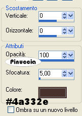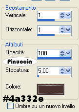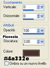 Effetti>Effetti 3d>Sfalsa ombra, con i seguenti settaggi, colore #4a332e.