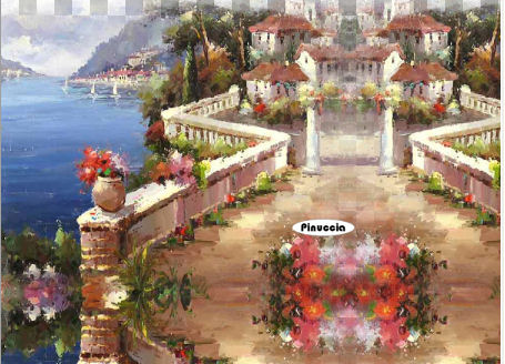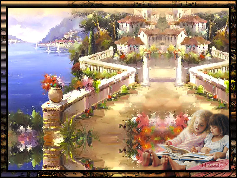 qui puoi trovare qualche risposta ai tuoi dubbi. Se l'argomento che ti interessa non è presente, ti prego di segnalarmelo. Questo tutorial è stato scritto con Corel X2. Per tradurlo, ho usato PSP X. Occorrente: Materiale qui Filtro: Vivida qui Apri una nuova immagine trasparente 750 x 550 pixels. Selezione>Seleziona tutto. Apri il tube paisaje, e vai a Modifica>Copia. Torna al tuo lavoro e vai a Modifica>Incolla nella selezione. Selezione>Deseleziona. Sposta l'immagine a sinistra.![]() Livelli>Duplica. Immagine>Rifletti. Posiziona l'immagine duplicata a destra, come nell'esempio:![]() Livelli>Unisci>Unisci visibile. Livelli>Duplica. Immagine>Capovolgi. Sistema le immagini come nell'esempio:![]() Livelli>Nuovo livello raster. Livelli>Disponi>Porta sotto. Riempi il livello con il colore #fcd3a6.Regola>Rimozione disturbo in un passaggio. Effetti>Plugins>Final Impatct>Vivida, con i seguenti settaggi: ![]() Apri il tube con le bambine e vai a Modifica>Copia. Torna al tuo lavoro e vai a Modifica>Incolla come nuovo livello. Immagine>Ridimensiona, al 50%, tutti i livelli non selezionato. Sposta il tube nell'angolo in basso a destra.Livelli>Unisci>Unisci visibile. Modifica>Copia (questo ti serve per memorizzare l'immagine). Immagine>Aggiungi bordatura, 3 pixels, simmetriche, con il colore nero. Immagine>Aggiungi bordatura, 20 pixels, simmetriche, con il colore bianco. Seleziona il bordo bianco con la bacchetta magica ![]() ![]() Livelli>Nuovo livello raster. Modifica>Incolla nella selezione. Effetti>Effetti artistici>Cera liquida. Regola>Messa a fuoco>Accentua messa a fuoco. Effetti>Effetti di trama>Veneziana, con i seguenti settaggi, colore nero: ![]() Selezione>Deseleziona. Immagine>Aggiungi bordatura, 3 pixels, simmetriche, con il colore nero. Aggiungi il tuo nome e/o il tuo watermark e salva in formato jpg. ![]() Se hai problemi o dubbi, o trovi un link non funzionante, o anche soltanto per un saluto, scrivimi. 24 Giugno 2008 |