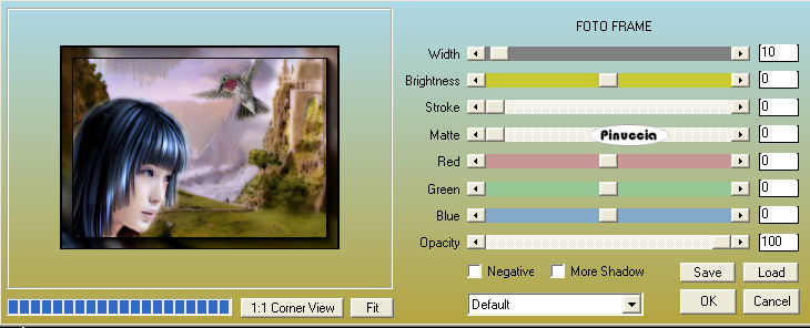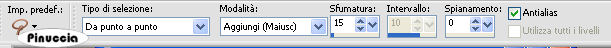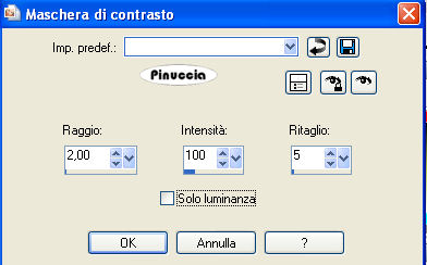 qui puoi trovare qualche risposta ai tuoi dubbi. Se l'argomento che ti interessa non è presente, ti prego di segnalarmelo. Questo tutorial è stato scritto con Corel X2. Per tradurlo, ho usato PSP X. Occorrente: Materiale qui Filtri: AAA Multifilter qui Lucisart qui Xero qui Pulisci i tubes della ragazza e dell'uccello. ***** Eccoti alcune indicazioni dei miei passaggi sull'immagine della ragazza, che possono servirti da esempio. Prima di tutto: Livelli>Innalza livello di sfondo. Ho attivato lo strumento Selezione a mano libera , da punto a punto,impostando la sfumatura a 15 (questa impostazione dipende dall'immagine e può variare a seconda del risultato che si vuole ottenere). ![]() Ho selezionato i contorni della ragazza. Una volta rilasciato il tasto del mouse, la selezione si allarga per effetto della sfumatura. ![]() Selezione>Inverti. ![]() Premi sulla tastiera il tasto CANC ![]() ![]() Sulla tastiera tasto CANC una o due volte (anche questo dipende dall'immagine che si sta pulendo).Selezione>Deseleziona. ![]() A questo punto, se intorno all'immagine rimane qualche "disturbo", attiva la gomma , impostando la dimensione a pochi pixels (5-10), perchè dovrai cancellari piccoli spazi,e cancella i residui dell'immagine. Quando hai "pulito i tubes, puoi iniziare il tutorial. ***** Apri una nuova immagine trasparente 750 x 550 pixels. Selezione>Seleziona tutto. Apri l'immagine paisaje.jpg, e vai a Modifica>Copia. Torna al tuo lavoro e vai a Modifica>Incolla nella selezione. Selezione>Deseleziona. Regola>Messa a fuoco>Maschera di contrasto: ![]() **** Effetti>Plugins>Lucisart ![]() ho saltato questo passaggio perchè la versione demo di questo filtro non ne permette l'applicazione. L'ho sostituito applicando l'Effetto Porcelain del filtro xero: ![]() **** Apri il tube della ragazza e vai a Modifica>Copia. Torna al tuo lavoro e vai a Modifica>Incolla come nuovo livello. Immagine>Rifletti. Posiziona il tube in basso a sinistra.Apri il tube dell'uccello e vai a Modifica>Copia. ![]() Torna al tuo lavoro e vai a Modifica>Incolla come nuovo livello. Immagine>Ruota per gradi - 75 gradi a sinistra. Sposta il tube in alto a destra.Livelli>Unisci>Unisci visibile. Effetti>Plugins>Xero - Porcelain con i settaggi standard. ![]() Effetti>Plugins>AAA frames - Foto Frame: ![]() Immagine>Aggiungi bordatura, 2 pixels, simmetriche, con il colore nero. Apri il tube "pincel" e vai a Modifica>Copia. Torna al tuo lavoro e vai a Modifica>Incolla come nuovo livello. Effetti>Effetti 3D>Sfalsa ombra: ![]() Aggiunti il tuo nome e/o il tuo watermark. Livelli>Unisci>Unisci tutto e salva in formato jpg. ![]() Se hai problemi o dubbi, o trovi un link non funzionante, o anche soltanto per un saluto, scrivimi. 30 Agosto 2008 |
