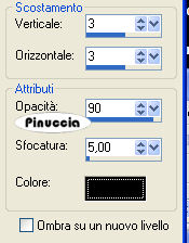Effetti>Effetti 3D>sfalsa ombra, con i seguenti settaggi.