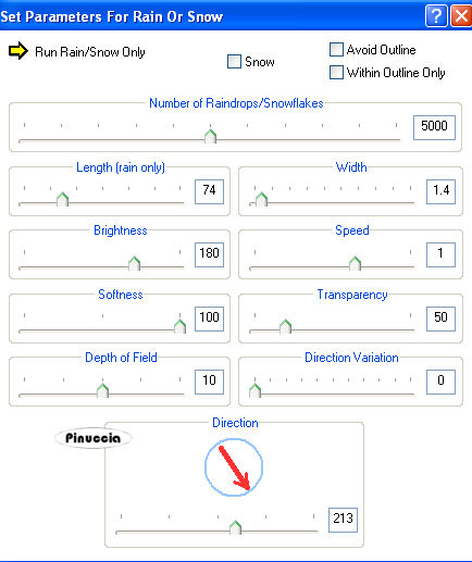 Clicca sull'icona delle combinazioni pioggia/neve/anelli: