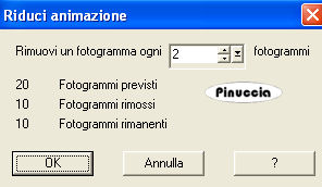 Animazione>Riduci l'animazione, e imposta come nell'esempio per eliminare un fotogramma ogni 2 fotogrammi; in questo modo la tua animazione passerà da 20 a 10 fotogrammi.
