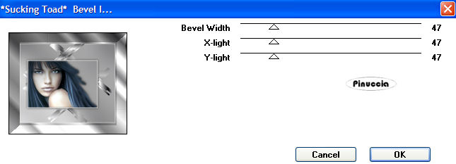 Effetti>Plugins>Toadies - *sucking toad* Bevel I, con i seguenti settaggi: