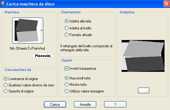 qui puoi trovare qualche risposta ai tuoi dubbi. Se l'argomento che ti interessa non è presente, ti prego di segnalarmelo. Occorrente: Materiale qui Filtri: Flaming Pear - Kyoto colour qui Xero qui Il risultato di questo tutorial può essere diverso a seconda delle impostazioni del filtro Kyoto. Metti la maschera nella cartella Maschere. Apri i tube e l'immagine di sfondo in Psp. 1. Apri una nuova immagine trasparente 600 x 450 pixels, e riempila con il colore #8c9ead. 2. Effetti>Effetti di trama>Veneziana, con i seguenti settaggi, colore bianco, luce dall'alto a sinistra selezionato. ![]() 3. Effetti>Plugins>Xero - Fritillary, con i settaggi standard. ![]() 4. Livelli>nuovo livello raster. 5. Selezione>Seleziona tutto. 6. Apri l'immagine "15450" e vai a Modifica>Copia. Torna al tuo lavoro e vai a Modifica>Incolla nella selezione. 7. Selezione>Deseleziona. 8. Livelli>Carica/Salva maschera>Carica maschera da disco. Cerca e carica la maschera Masker Nik-3sheets to the wind, inverti trasparenza selezionato. ![]() 9. Livelli>Unisci>Unisci gruppo. 10. Effetti>Effetti 3D>Sfalsa ombra, con i seguenti settaggi, colore nero. ![]() 11. Effetti>effetti di trama>Veneziana, con i settaggi usati al punto 2. 12. Livelli>Unisci>Unisci tutto. 13. Effetti>Plugins>Bordermania - Frame #2: ![]() 14. Apri il tube con la donna e vai a Modifica>Copia. Torna al tuo lavoro e vai a Modifica>Incolla come nuovo livello. Sposta il tube in basso a destra,come nel mio esempio. 15. Livelli>Unisci>Unisci tutto. 16. Effetti>Plugins>Flaming Pear - Kyoto color: ![]() 17. Regola>Morbidezza>Fuoco diffuso: ![]() 18. Effetti>Plugins>Xero - Porcelain: ![]() 19. Apri il tube con il testo e vai a Modifica>copia. Torna al tuo lavoro e vai a Modifica>Incolla come nuovo livello. Spostalo in alto a destra.Abbassa l'opacità di questo livello al 40%. 20. Effetti>Plugins>Xero - Porcelain, con i settaggi precedenti. 21. Aggiungi il tuo nome e/o il tuo watermark. 22. Livelli>Unisci>Unisci tutto. Ridimensiona, se vuoi, al 75%, e salva in formato jpg. ![]() Se hai problemi o dubbi, o trovi un link non funzionante, o anche soltanto per un saluto, scrivimi. 5 Maggio 2008 |