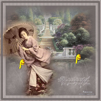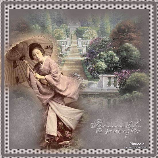 qui puoi trovare qualche risposta ai tuoi dubbi. Se l'argomento che ti interessa non è presente, ti prego di segnalarmelo. Questo tutorial è stato scritto e tradotto con PSP X, ma può essere eseguito anche con le altre versioni di PSP. Occorrente: Materiale qui Metti la Selezione nella cartella Selezioni. Filtri: Cybia qui FM Tile Tools qui Metti il pennello nella cartella Pennelli. Attenzione, il pennello è composto da due files che non devono essere separati. Vedi gli appunti sui pennelli qui. Imposta il colore di primo piano con #726a6a, e il colore di sfondo con #e2dad7. 1. Apri una nuova immagine trasparente 550 x 550 pixels, e riempila con il colore di sfondo #e2dad7.2. Effetti>Plugins>Cybia - Screenworks - Dot Screen: ![]() 3. Selezione>Seleziona tutto. Selezione>Modifica>Contrai - 30 pixels. 4. Livelli>Nuovo livello raster. Riempi con il colore di primo piano #726a6a.5. Selezione>Deseleziona. 6. Apri il tube OldWestburyGarden, e vai a Modifica>copia. Torna al tuo lavoro e vai a Modifica>Incolla come nuovo livello. Abbassa l'opacità di questo livello al 50%. Sposta il tube in alto, come nel mio esempio.7. Effetti>Plugins>FM Tile Tools - Blend Emboss. ![]() 8. Livelli>Nuovo livello raster. Attiva lo strumento Pennello ![]() cerca e seleziona il pennello @garden sarah11, e applicalo con colore di sfondo #e2dad7 sotto il tube del giardino, come nel mio esempio. può capitare, come è successo a me, che qualcosa non funzioni e il pennello non sia perfettamente visibile. In questo caso, apri il file "Image10" (il pennello in formato psp) e vai a Modifica>Copia. Torna al tuo lavoro e vai a Modifica>Incolla come nuovo livello e duplica il livello, in modo da ottenere pressappoco questo risultato: ![]() 9. Apri il tube della donna (Patry Mists JapanScene), e vai a Modifica>Copia. Torna al tuo lavoro e vai a Modifica>Incolla come nuovo livello. Sposta la donna a sinistra,in modo che una parte dell'ombrello esca dall'immagine, vedi il mio esempio. 10. Apri il file con il testo e vai a Modifica>Copia. Torna al tuo lavoro e vai a Modifica>Incolla come nuovo livello. Sposta il testo in basso a destra.11. Aggiungi il tuo nome e/o il tuo watermark. 12. Livelli>Unisci>Unisci tutto. 13. Selezione>Seleziona tutto. Selezione>Modifica>Contrai - 10 pixels. 14. Selezione>Modifica>Seleziona bordature selezione: ![]() 15. Riempi la selezione con il colore di primo piano #726a6a.Selezione>Deseleziona. Salva in formato jpg. ![]() Se hai problemi o dubbi, o trovi un link non funzionante, o anche soltanto per un saluto, scrivimi. 11 Agosto 2008 |