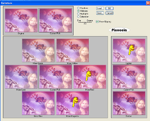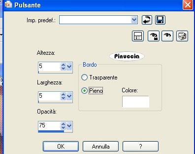 qui puoi trovare qualche risposta ai tuoi dubbi. Se l'argomento che ti interessa non è presente, ti prego di segnalarmelo. Questo tutorial è stato tradotto con PSP X, ma può essere eseguito anche con le altre versioni di PSP. Occorrente: Materiale qui Filtri: Xero qui Penta.com qui Adjust-Variations qui Apri tutto il materiale in PSP. 1. Apri una nuova immagine trasparente 600 x 450 pixels. Selezione>Seleziona tutto. 2. Apri l'immagine "Rovako" e vai a Modifica>Copia. Torna al tuo lavoro e vai a Modifica>Incolla nella selezione. 3. Regola>Sfocatura>Sfocatura gaussiana, raggio 78. ![]() 4. Effetti>Plugins>Penta.com - Jeans, con i seguenti settaggi: ![]() Mantieni selezionato. 5. Livelli>Nuovo livello raster. Modifica>Incolla nella selezione (l'immagine è ancora in memoria). Abbassa l'opacità di questo livello al 30%. Selezione>Deseleziona. 6. Apri il tube "4", e vai a Modifica>Copia. Torna al tuo lavoro e vai a Modifica>Incolla come nuovo livello. Posizionalo nella luna, vedi il mio esempio.Abbassa l'opacità di questo livello al 40%. 7. Apri il tube dell'uomo "Mtm Misted tube40-Josh holloway", e vai a Modifica>Copia. Torna al tuo lavoro e vai a Modifica>Incolla come nuovo livello. Sposta il tube a destra.8. Apri il tube della donna e vai a Modifica>Copia. Torna al tuo lavoro e vai a Modifica>Incolla come nuovo livello. Spostalo in basso a sinistra.Abbassa l'opacità di questo livello al 75%. 9. Livelli>Unisci>Unisci tutto. 10. Immagine>Ridimensiona a 550 x 400 pixels, mantieni proporzioni non selezionato. ![]() 11. Effetti>Effetti 3D>Pulsante, con i seguenti settaggi, colore bianco. ![]() 12. Effetti>Plugins>Xero - Porcelain, con i seguenti settaggi. ![]() 13. Effetti>Plugins>Adjust - Variations, con i settaggi che preferisci. Nel mio esempio ho preferito non applicare questo filtro. Per fare un altro esempio, con il settaggio 1 clic More Red, 1 clic More Magenta, 1 clic Lighter: ![]() Questo è il risultato. ![]() 14. Aggiungi il tuo nome e/o il tuo watermark. Livelli>Unisci>Unisci tutto e salva in formato jpg. ![]() Se hai problemi o dubbi, o trovi un link non funzionante, o anche soltanto per un saluto, scrivimi. 11 Agosto 2008 |