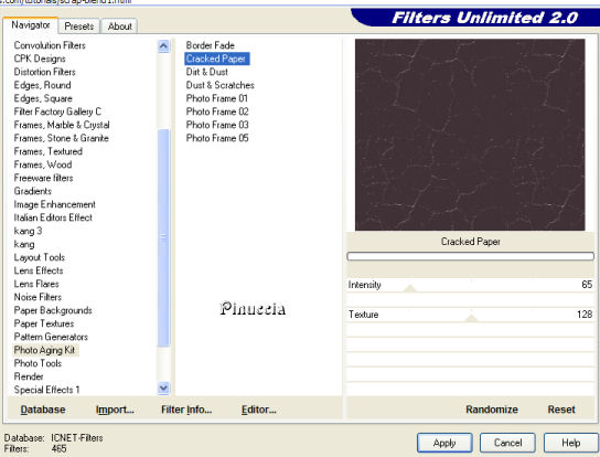 qui puoi trovare qualche risposta ai tuoi dubbi. Se l'argomento che ti interessa non è presente, ti prego di segnalarmelo. Questo tutorial è stato creato con PSP 8.1. Può essere eseguito anche con le altre versioni di PSP. Per questo tutorial ho usato 14 tubes. Fai attenzione, perchè alcuni tubes hanno i livelli chiusi. Materiale qui e qui (ho diviso i tubes in due zip, per limitare i disagi del peso). Filtri: Xero Porcelain Filters Unlimited 2 qui Photo Aging Kit qui Photo Aging Kit, per funzionare, va importato in Filters Unlimited. Come fare vedi qui Apri tutti i tubes in PSP. 1. Apri una nuova immagine trasparente 437 x 400 pixels. 2. Imposta il colore di primo piano con #3F3135 e il colore di sfondo con #C6B0A9. Passa il colore di primo piano a gradiente di primo piano/sfondo, stile lineare, con i seguenti settaggi: ![]() e riempi l'immagine con il gradiente.(prendi nota che il colore più scuro dovrebbe trovarsi nella parte superiore del gradiente. 3. Apri il tube scrap-blend1 e vai a Modifica>Copia. Torna alla tua immagine e vai a Modifica>Incolla>Incolla come nuovo livello. Spostalo a sinistra.Con lo strumento Deformazione allarga il tube in alto e in basso finchè l'albero tocca i bordi.![]() Nella paletta dei livelli cambia la modalità di miscelatura in Luminanza (Esistente). 4. Apri il tube scrap-blend2 e vai a Modifica>Copia. Torna al tuo lavoro e vai a Modifica>Incolla>Incolla come nuovo livello. Lascialo dove si trova. Nella paletta dei livelli cambia la modalità di miscelatura in Luminanza (esistente) e abbassa l'opacità al 60%. 5. Apri il tube MOT-childphoto46. Immagine>Ridimensiona del 35%. Modifica>Copia. Torna al tuo lavoro e vai a Modifica>Incolla>Incolla come nuovo livello. Spostalo in alto a destra sul bordo dell'ultimo tube.Cambia la modalità di miscelatura in Luminanza (Esistente). 6. Apri il tube MOT-children02. Immagine>Ridimensiona del 55%. Modifica>Copia. Torna al tuo lavoro e vai a Modifica>Incolla>Incolla come nuovo livello. Spostalo in basso a destra(vedi come esempio la tag finale). Abbassa l'opacità di questo livello all'80% e cambia la modalità di miscelatura in Luminanza (esistente). 7. Apri il tube PH_Fisher_sixty_three. Immagine>Ridimensiona, del 55%. Modifica>Copia. Ritorna al tuo lavoro e vai a Modifica>Incolla>Incolla come nuovo livello. Spostalo a sinistra.(vedi l'esempio finale). Abbassa l'opacità di questo livello al 72%. 8. Posizionati sul livello 2 (il livello dell'albero). Attiva lo strumento gomma dimensione 20, durezza 0, opacità 50:Cancella le tracce dell'albero dal viso della donna. Ritorna al livello superiore. 9. Con lo strumento Gomma e con gli stessi settaggi, clicca con il tasto destro del mouse sui visi della donna e dell'uomo per dare loro più colore.Livelli>Unisci>Unisci visibile. 10. Effetti>Plugins>Xero>Porcelain, con i settaggi standard. ![]() Metti da parte l'immagine per il momento. Ti servirà più tardi. 11. Apri una nuova immagine trasparente 600 x 550 pixels. 12. Riempi l'immagine con #3F3135.13. Effetti>Plugins>ICN Filters Unlimited 2, Photo Aging Kit /Cracked Paper, intensity a 65. ![]() 14. Livelli>Nuovo livello raster. Riempi il nuovo livello con il gradiente che hai usato all'inizio di questo tutorial.Ripeti l'Effetto Photo Aging Kit /Cracked Paper. 15. Immagine>Ridimensiona, del 90% due volte, tutti i livelli non selezionato. ![]() 16. Effetti>Effetti 3D>Sfalsa ombra, con i seguenti settaggi, colore nero: ![]() Ripeti l'Effetto Sfalsa ombra, ma cambiando verticale e orizzontale a -1. 17. Ritorna all'immagine che hai messo da parte poco fa e vai a Modifica>Copia. Ritorna al tuo lavoro e vai a Modifica>Incolla>Incolla come nuovo livello. Effetti>Effetti 3D>Sfalsa ombra, con gli stessi settaggi del passo 16. 18. Apri il tube scrap-blend3. Questo tube ha tutte le decorazioni necessarie per questo tutorial. Assicurati di essere posizionato sul relativo livello e vai a Modifica>Copia. Torna al tuo lavoro, posizionati sul livello Raster 2, e vai a Modifica>Incolla>Incolla come nuovo livello. Lascia la decorazione dove si trova. 20. Torna allo scrap-blend3, posizionati sul livello "clock" e vai a Modifica>copia. Torna al tuo lavoro e vai a Modifica>Incolla>Incolla come nuovo livello. Sposta l'orologio in alto (vedi esempio finale).21. Vai ancora allo scrap-blend3, posizionati sul livello "corner-tag1" e vai a Modifica>Copia. Torna al tuo lavoro, posizionati sul livello superiore e vai a Modifica>Incolla>Incolla come nuovo livello. Posiziona l'angolo in alto a sinistra (vedi esempio finale).22. Scrap-blend3: posizionati sul livello "corner-tag2" e vai a Modifica>Copia. Torna al tuo lavoro e vai a Modifica>Incolla>incolla come nuovo livello. Sposta l'angolo in alto a destra (vedi esempio finale).23. Scrap-blend3: posizionati sul livello "box" e vai a Modifica>Copia. Torna al tuo lavoro e vai a Modifica>Incolla>incolla come nuovo livello. Spostalo in basso a destra. (vedi esempio finale).24. Scrap-blend3: posizionati sul livello "letter" e vai a Modifica>Copia. Torna al tuo lavoro e vai a Modifica>Incolla>Incolla come nuovo livello. Sposta la lettera in basso a sinistra. (vedi esempio finale).25. Scrap-blend3: posizionati sul livello "text" e vai a Modifica>Copia. Torna al tuo lavoro e vai a Modifica>Incolla>Incolla come nuovo livello. Sposta il testo dove preferisci.26. Puoi aggiungere tutte le decorazioni che preferisci e, se vuoi, un Effetto Xero /Porcelain. 27. Livelli>Unisci>Unisci visibile. Selezione>Seleziona tutto. Selezione>Modifica>contrai di 2 pixels. Selezione>Inverti. 28. Livelli>Nuovo livello raster. Riempi la selezione con #3F3135.Selezione>Nessuna selezione. Effetti>Effetti 3D>Sfalsa ombra, con i settaggi del passo 16. 29. Livelli>unisci>Unisci tutto e salva in formato jpg. ![]() Se hai problemi o dubbi, o trovi un link non funzionante, o anche soltanto per un saluto, scrivimi. 26 Settembre 2006 |