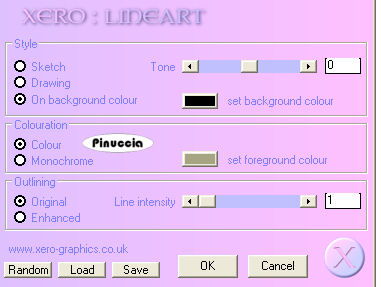 Effetti>Plugins>Xero - Lineart, con i seguenti settaggi: