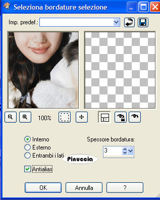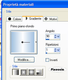 qui puoi trovare qualche risposta ai tuoi dubbi. Se l'argomento che ti interessa non è presente, ti prego di segnalarmelo. Occorrente: Materiale qui Il tube usato è di Alejandra Rosales. Non aprire la gif Amazone-rond in PSP. Serve per lo script. Filtri: DSB Flux qui Screenworks qui Filters Unlimited 2.0 qui Imposta il colore di primo piano con #506E91, e il colore di sfondo con il bianco: #ffffff. 1. Apri il tube di Alejandra Rosales del cane con la ragazza. 2. Elimina il livello del watermark. Livelli>Nuovo livello raster. Riempi con il colore di primo piano.3. Effetti>Plugins>Filters Unlimited - Render - Cloud (fore-/background color) ![]() 4. Nella paletta dei livelli porta il livello inferiore del tube in alto. 5. Effetti>Effetti 3D>Sfalsa ombra, con i seguenti settaggi: ![]() Ripeti l'Effetto Sfalsa ombra, ma cambiando verticale e orizzontale a -2. 6. Livelli>Unisci>Unisci tutto. 7. Attiva lo strumento Selezione , rettangolo arrotondato,e traccia una selezione dell'immagine. 8. Modifica>Copia e Modifica>Incolla>Incolla come nuova immagine. 9. Seleziona con la bacchetta magica gli angoli dello sfondo,tenendo premuto il tasto shift. ![]() Se imposti la bacchetta in modalità Aggiungi, non è necessario tenere premuto il tasto shift. 10. Selezione>Inverti. 11. Selezione>Modifica>Seleziona bordature selezione: ![]() 12. Livelli>Nuovo livello raster. Riempi il bordo con un motivo argento.13. Livelli>Unisci>Unisci visibile. Selezione>Nessuna selezione. 14. Immagine>Ridimensiona, a 420 pixels di altezza. Regola>Messa a fuoco>Metti a fuoco. 15. Apri l'immagine con la slitta. Elimina il livello del watermark. 16. Seleziona con la bacchetta magica lo sfondo trasparente.17. Ripeti i passaggi da 10 a 13. 18. Imposta il colore di primo piano con #A1C0DF, e crea un Gradiente, stile lineare, con i seguenti settaggi: ![]() 19. Apri una nuova immagine trasparente 900 x 450 pixels, e riempila con questo gradiente.20. Effetti>Plugins>Screenworks - Close Knit. 21. Livelli>Nuovo livello raster. Riempi con il gradiente.22. Abbassa l'opacità di questo livello al 74%. 23. Livelli>Unisci>Unisci visibile. 24. Effetti>Plugins>Dsb Flux - Linear Transmission: ![]() 25. Attiva l'immagine con la slitta e vai a Modifica>Copia. Torna all'immagine di sfondo 900x450 e vai a Modifica>Incolla>Incolla come nuovo livello. 26. Effetti>Effetti 3D>Sfalsa ombra: ![]() Ripeti l'Effetto Sfalsa ombra, ma cambiando verticale e orizzontale a -2. 27. Attiva l'immagine della donna con il cane e vai a Modifica>Copia. Torna al tuo lavoro e vai a Modifica>Incolla>Incolla come nuovo livello. 28. Effetti>Effetti 3D>Sfalsa ombra, con i settaggi del punto 26. 29. Livelli>Duplica. 30. Nella paletta dei livelli attiva il livello originale del tube. 31. Immagine>Ruota>Ruota per gradi, 15 gradi a destra, tutti i livelli non selezionato. ![]() 33. Livelli>Unisci>Unisci tutto. 33. Immagine>Aggiungi bordatura, 2 pixels, simmetriche, con il colore nero. Seleziona il bordo con la bacchetta magica ![]() e riempilo con il motivo argento.34. Attiva lo strumento Testo ![]() scegli un bel font e scrivi un testo. Io ho usato Fiolex Girls, mobile, la dimensione dipende dal testo e dalla versione di PSP che stai usando. Effetti>Effetti 3D>Sfalsa ombra: ![]() 35. Selezione>Nessuna selezione. L'immagine è finita. Per realizzare lo script ti servono anche tre immagini di sfondo, e la gif rotonda che hai trovato nello zip. Indicazioni per gli sfondi: Questo è quello che ho fatto io. Naturalmente, puoi scegliere di creare altri sfondi, o cambiare le impostazioni come preferisci. Per il primo sfondo ho riempito un'immagine 100x100 con un colore abbinato alla tag e ho applicato l'Effetto Filters Unlimited - Paper Textures - Filter Paper. Per il secondo sfondo ho riempito un'immagine 100x100 con un colore abbinato alla tag e ho applicato l'Effetto Filters Unlimited - Paper Textures - Japanese Paper. Per il terzo sfondo ho riempito un'immagine 100x100 con un motivo argento. Per eseguire lo script Apri lo script di Jeannette che trovi qui, e segui i preliminari descritti alla fine di questo tutorial, fino all'inserimento dello sfondo-suono. Dopo aver inserito lo sfondo-suono, dovrai indicare allo script dove trovare le immagini. Clicca su Origine e identifica i punti di inserimento dei vari elementi dello script. Se hai messo tutti i file in una cartella, il percorso del suono ti servirà da guida per l'inserimento degli altri files: ti basterà cambiare l'ultima parte: il nome e l'estensione. Nella schermata sotto sono indicati i punti in cui dovrai inserire, tra le virgolette, il percorso delle due immagini di sfondo, e dell'immagine che hai duplicato al punto 21 e ridotto a 300x300 pixels. 1. Qui inserisci il primo sfondo. 2. Qui inserisci il secondo sfondo, che servirà per le tabelle esterne. 3. Qui inserisci lo sfondo argento che servirà per le tabelle centrali. ![]() Nella schermata sotto è indicato il punto in cui dovrai inserire il percorso dell'immagine principale e della gif. 1. Qui inserisci l'immagine principale. 2. Qui inserisci la gif. ![]() Ricorda che, contemporaneamente, puoi controllare il risultato andando su Anteprima. fai molta attenzione alle estensioni dei files e alle maiuscole-minuscole, che devono essere corrette, altrimenti lo script non troverà le immagini da inserire Clicca adesso sulla linguetta Modifica, per aggiungere il testo. clicca due volte all'interno del riquadro. Apparirà la cornice che ti dà il via libera per sostituire il testo esistente e aggiungere il tuo. Quando hai finito, clicca all'esterno e la cornice sparirà. Il tuo messaggio con lo script è pronto per il tasto Invia. Se non vuoi spedirlo e vuoi soltanto tenerlo per te, vai a File>Salva con nome e mettilo in una cartella a tua scelta. Ricordati, però, che quando vorrai rivedere lo script, i files devono trovarsi nello stesso posto. Se nel frattempo li avrai spostati, vedrai soltanto delle crocette rosse. Avvertimento: non devi preoccuparti se in Modifi