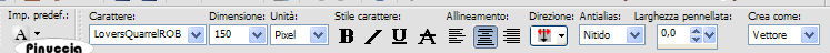 Io ho scelto il font LoversQuarrelROB.ttf, dimensione 150, crea come vettore: