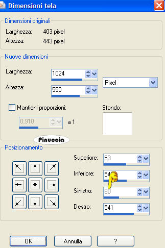 2. Immagine>Dimensione tela, 1024 x 550, colore di sfondo bianco,
