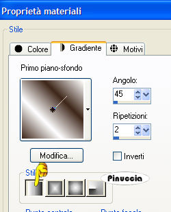 Passa il colore di primo piano a Gradiente di primo piano/sfondo, lineare, con i seguenti settaggi: