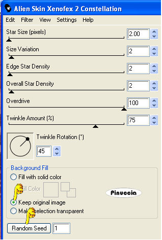 Ripeti l'Effetto Constellation, con gli stessi settaggi, ma cliccando sul bottone Random Seed.