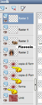 5. Nella paletta dei livelli chiudi i livelli delle due copie della forma,