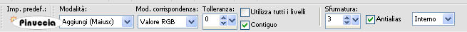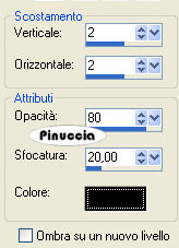qui puoi trovare qualche risposta ai tuoi dubbi. Se l'argomento che ti interessa non è presente, ti prego di segnalarmelo. Occorrente: Materiale qui Apri tutto il materiale in PSP. Esporta i pennelli: File>Esporta>pennello personalizzato, assegna un nome e clicca ok. Apri una nuova immagine BIANCA 700 x 500 pixels. Attiva "ColorfullHeart TempPlate", e vai a Modifica>Copia. Torna al tuo lavoro e vai a Modifica>Incolla>Incolla come nuovo livello. Sposta il template a sinistra.Attiva il tube Element-Tripleframe e vai a Modifica>Copia. Torna al tuo lavoro e vai a Modifica>Incolla>Incolla come nuovo livello. Sposta il tube a destra.![]() Attiva lo strumento Bacchetta magica , sfumatura 3,![]() e clicca all'interno della cornice superiore per selezionarla. Attiva Heart-ScrapbookingStuff. Attiva lo strumento Selezione , rettangolo,scegli uno dei cuori e selezionalo senza includere spazi trasparenti: ![]() Modifica>Copia. Torna al tuo lavoro e vai a Modifica>Incolla>Incolla nella selezione. Selezione>Nessuna selezione. Seleziona l'interno della cornice al centro.Attiva nuovamente Heart-ScrapbookingStuff e seleziona un altro cuore.Modifica>Copia. Torna al tuo lavoro e vai a Modifica>Incolla>Incolla nella selezione. Selezione>Nessuna selezione. Ripeti i passaggi con la cornice inferiore. Selezione>Nessuna selezione. Effetti>Effetti 3D>Sfalsa ombra, con i seguenti settaggi, colore nero. ![]() Attiva il tube "bm Pirate Queen"e vai a Modifica>Copia. Torna al tuo lavoro e vai a Modifica>Incolla>Incolla come nuovo livello. Spostalo contro le cornici.Effetti>Effetti 3D>Sfalsa ombra, con i settaggi precedenti. Attiva lo strumento Pennello ![]() Imposta il colore di primo piano con un colore scuro scelto dal tube o dal template. Cerca e seleziona il pennello misc.lyrics-sd05 e applicalo con questo colore in alto a sinistra. Naturalmente, se preferisci, puoi usare un altro testo. Livelli>Unisci>Unisci tutto. Immagine>Aggiungi bordatura, 2 pixels, simmetriche, con il colore scuro. Immagine>Aggiungi bordatura, 20 pixels, simmetriche, con il colore bianco. Seleziona questo bordo con la bacchetta magica , sfumatura 0,![]() Attiva nuovamente lo strumento Pennello ![]() cerca e seleziona il pennello wlj11504frame01-001, e applicalo negli angoli. Selezione>Nessuna selezione. Aggiungi il tuo nome e/o il tuo watermark, e salva in formato jpg. ![]() ![]() Se hai problemi o dubbi, o trovi un link non funzionante, o anche soltanto per un saluto, scrivimi. 28 Gennaio 2008 |