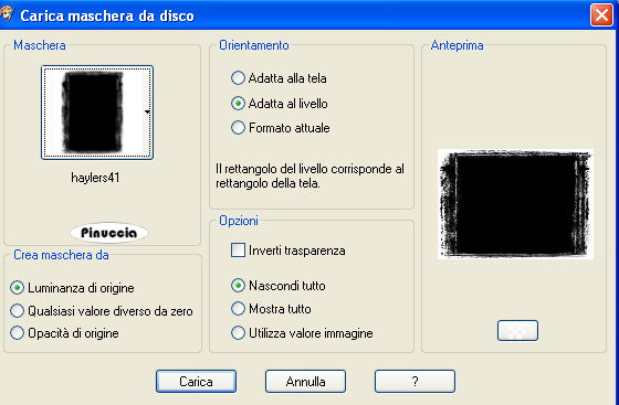 qui puoi trovare qualche risposta ai tuoi dubbi. Se l'argomento che ti interessa non è presente, ti prego di segnalarmelo. Occorrente: Materiale qui Filtro: Filters Unlimited 2.0 qui Metti la maschera nella cartella Maschere. Metti il pennello nella cartella Pennelli. Attenzione: il pennello è composto da due files che non devono essere separati. Vedi alcuni appunti sui pennelli qui Apri il font e minimizzalo. Lo troverai nella lista dei font disponibili, quando ti servirà. Apri una nuova immagine trasparente 700 x 500 pixels. Selezione>Seleziona tutto. Apri l'immagine di sfondo "12" e vai a Modifica>copia. Torna al tuo lavoro e vai a Modifica>Incolla nella selezione. Selezione>Deseleziona. Apri il tube dei cigni "14-2-06swans" e vai a Modifica>Copia. Torna al tuo lavoro e vai a Modifica>Incolla come nuovo livello. Sposta i cigni a sinistra.Cambia la modalità di miscelatura di questo livello in Luminanza (esistente), e abbassa l'opacità al 60%. Apri il tube della donna "sassyillusions blonde02", e vai a Modifica>Copia. Torna al tuo lavoro e vai a Modifica>Incolla come nuovo livello. Sposta il tube a destra.Apri il file di testo "tekst romantic" e vai a Modifica>copia. Torna al tuo lavoro e vai a Modifica>Incolla come nuovo livello. Spostalo a sinistra, come nel mio esempio.Livelli>Nuovo livello raster. Imposta il colore di primo piano con #e4accf, o con un colore chiaro scelto dal tuo tube, e riempi il livello con questo colore.Livelli>Carica/Salva maschera>Carica maschera da disco. Cerca e carica la maschera haylers 41. ![]() Livelli>Unisci>Unisci gruppo. Apri "stitch", e vai a Modifica>Copia. Torna al tuo lavoro e vai a Modifica>Incolla come nuovo livello. Sposta la cucitura a sinistra.Livelli>Duplica. Immagine>Rifletti. Livelli>Nuovo livello raster. Attiva lo strumento Pennello ![]() cerca e seleziona il pennello Gorjuss Valentine 10, e applicalo sull'immagine. Livelli>Unisci>Unisci tutto. Aggiungi il tuo nome e/o il tuo watermark. Per il mio testo ho usato il font TwoforJuanNF (lo trovi nello zip), dimensione 36. ![]() ![]() Se hai problemi o dubbi, o trovi un link non funzionante, o anche soltanto per un saluto, scrivimi. 5 Marzo 2008 |