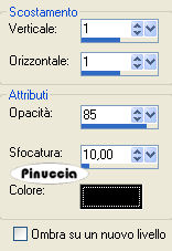 qui puoi trovare qualche risposta ai tuoi dubbi. Se l'argomento che ti interessa non è presente, ti prego di segnalarmelo. Occorrente: Materiale qui Il tube è di Mull. Metti la maschera nella cartella maschere e apri i tubes in PSP. Scegli due colori dal tube. Io ho usato #e3c1cf (rosa) e #bfdabe (verde). Apri una nuova immagine BIANCA 600 x 600 pixels. Apri doodleframe, e vai a Modifica>copia. Torna al tuo lavoro e vai a Modifica>Incolla come nuovo livello. Abbassa l'opacità di questo livello al 50%. Apri "Adeyeo-Freebies1-butterfly and flower overlay", e vai a Modifica>Copia. Torna al tuo lavoro e vai a Modifica>Incolla come nuovolivello. Livelli>Nuovo livello raster. Riempi il livello con il colore rosa #e3c1cf.Livelli>Carica/Salva maschera>Carica maschera da disco. Cerca e carica la maschera mask96-kreations: ![]() Effetti>Effetti di bordo>Aumenta. Livelli>Unisci>Unisci gruppo. Sposta la maschera al centro della cornice.![]() Apri Desiderenzia_deco03. Posizionati sul livello della decorazione rosa, e vai a Modifica>Copia. Torna al tuo lavoro e vai a Modifica>Incolla come nuovo livello. Sposta la decorazione in basso a sinistra.Attiva nuovamente Desiderenzia_deco03. Posizionati sul livello della decorazione verde, e vai a Modifica>copia. Torna al tuo lavoro e vai a Modifica>Incolla come nuovo livello. Immagine>Rifletti. Immagine>Capovolgi. Sposta l'immagine in alto a destra.![]() Apri il tube e vai a Modifica>Copia. Torna al tuo lavoro e vai a Modifica>Incolla come nuovo livello. Sposta il tube a destra.Effetti>Effetti 3D>Sfalsa ombra, con i seguenti settaggi, colore nero: ![]() Apri MZ_thisthing, e vai a Modifica>Copia. Torna al tuo lavoro e vai a Modifica>Incolla come nuovo livello. Spostalo a sinistra.Apri il file con il testo "I couldn't sleep", e vai a Modifica>Copia. Torna al tuo lavoro e vai a Modifica>Incolla come nuovo livello. Sposta il testo a destra.Livelli>Unisci>Unisci tutto. Immagine>Aggiungi bordatura, 1 pixel, simmetriche, con il colore rosa. Aggiungi il tuo nome e/o il tuo watermark e salva in formato jpg. ![]() Se hai problemi o dubbi, o trovi un link non funzionante, o anche soltanto per un saluto, scrivimi. 2 Giugno 2008 |