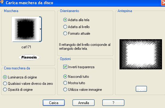 qui puoi trovare qualche risposta ai tuoi dubbi. Se l'argomento che ti interessa non è presente, ti prego di segnalarmelo. Occorrente: Materiale qui Metti la maschera nella cartella maschere e apri il materiale in PSP. Lo scrapkit è di Designs by Lauren. Apri una nuova immagine trasparente 700 x 500 pixels. Selezione>Seleziona tutto. Apri BG_plainwhitelinen, e vai a Modifica>Copia. Torna al tuo lavoro e vai a Modifica>Incolla nella selezione. Livelli>Nuovo livello raster. Apri BG_plainbluelinen e vai a Modifica>Copia. Torna al tuo lavoro e vai a Modifica>Incolla nella selezione. Selezione>Deseleziona. Livelli>Carica/Salva maschera>Carica maschera da disco. Cerca e carica la maschera cat171, inverti trasparenza selezionato: ![]() Livelli>Unisci>Unisci gruppo. Apri element_bluegrungeedge, e vai a Modifica>Copia. Torna al tuo lavoro e vai a Modifica>Incolla come nuovo livello. Apri element_blueglitteredge, e vai a Modifica>Copia. Torna al tuo lavoro e vai a Modifica>Incolla come nuovo livello. Spostalo a destra.Apri element_roundframe, e vai a Modifica>Copia. Torna al tuo lavoro e vai a Modifica>Incolla come nuovo livello. Apri element_smallbluebutton, e vai a Modifica>Copia. Torna al tuo lavoro e vai a Modifica>Incolla come nuovo livello. Spostalo in alto a destra, nell'angolo della cornice.Apri element_acrylbutton, e vai a Modifica>Copia. Torna al tuo lavoro e vai a Modifica>Incolla come nuovo livello. Spostalo nell'angolo in basso a destra.Apri il file di testo e vai a Modifica>Copia. Torn al tuo lavoro e vai a Modifica>Incolla come nuovo livello. Spostalo a sinistra.Apri il tube della donna e vai a Modifica>Copia. Torn al tuo lavoro e vai a Modifica>Incolla come nuovo livello. Sposta questo tube a destra, un po' più in basso.Effetti>Effetti 3D>Sfalsa ombra, con i seguenti settaggi, colore nero: ![]() Livelli>Unisci>Unisci tutto. Aggiungi il tuo nome e/o il tuo watermark. Per il mio testo ho usato il font Everytime I miss you, dimensione 30. ![]() ![]() ![]() Se hai problemi o dubbi, o trovi un link non funzionante, o anche soltanto per un saluto, scrivimi. 22 Aprile 2008 |