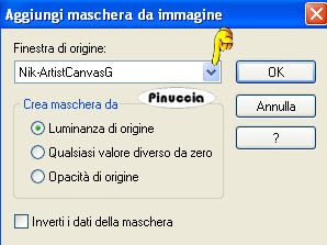 qui puoi trovare qualche risposta ai tuoi dubbi. Se l'argomento che ti interessa non è presente, ti prego di segnalarmelo. Occorrente: Un bel tube. Il resto del materiale qui Metti il gradiente nella cartella Gradienti. Apri il resto del materiale in PSP. Apri una nuova immagine BIANCA 700 x 550 pixels. Livelli>Nuovo livello raster. Riempi il nuovo livello con il gradiente.non ho potuto usare il gradiente fornito con il materiale. Se anche tu hai lo stesso problema, crea un gradiente scegliendo due colori contrastanti dal tuo tube. Livelli>Nuovo livello maschera>Da immagine: apri il menu sotto la finestra di origine e vedrai i files aperti: seleziona la maschera Nik-ArtistCanvasG, con i seguenti settaggi, inverti i dati della maschera non selezionato: ![]() Attenzione! Non devi unire ancora i livelli. Lo farai dopo. Apri il tube dei fiori "PinkOrchids", e vai a Modifica>copia. Torna al tuo lavoro e vai a Modifica>Incolla>Incolla come nuova selezione. Posiziona i fiori in basso (guarda il mio esempio per controllare la posizione). Mantieni selezionato Effetti>Effetti 3D>Sfalsa ombra, con i seguenti settaggi, colore nero ![]() Selezione>Nessuna selezione. E adesso puoi fare: Livelli>Unisci>Unisci gruppo. Apri la cornice di fiori "Light Pink 60s Flower Frame", e vai a Modifica>Copia. Torna al tuo lavoro e vai a Modifica>Incolla>Incolla come nuovo livello. E' già correttamente posizionata, non occorre spostarla. Apri il tuo tube e vai a Modifica>Copia. Torna al tuo lavoro e vai a Modifica>Incolla>Incolla come nuovo livello. Spostalo un po' più in basso.Effetti>Effetti 3D>Sfalsa ombra, con i settaggi precedenti. Apri il file di testo "tekst blossom" e vai a Modifica>Copia. Torna al tuo lavoro e vai a Modifica>Incolla>Incolla come nuovo livello. Sposta il testo a sinistra.Se vuoi, puoi usare un altro testo a tua scelta. Per il mio testo ho usato il font Rickles Non dimenticare, se esiste, di aggiungere il copyright @ dell'artista. Aggiungi il tuo nome e/o il tuo watermark e salva in formato jpg. ![]() ![]() ![]() Se hai problemi o dubbi, o trovi un link non funzionante, o anche soltanto per un saluto, scrivimi. 15 Marzo 2008 |