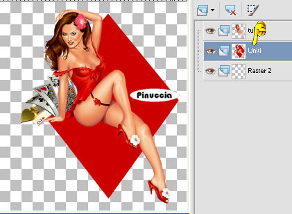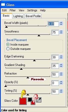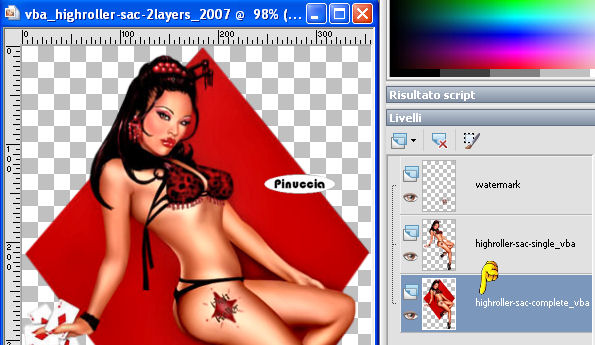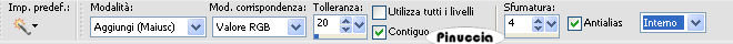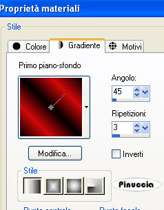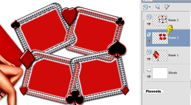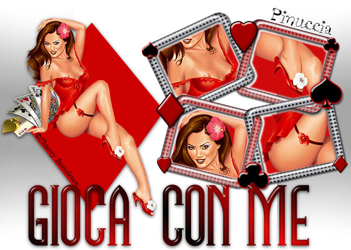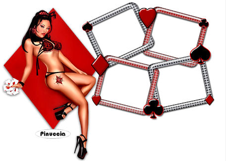 qui puoi trovare qualche risposta ai tuoi dubbi. Se l'argomento che ti interessa non è presente, ti prego di segnalarmelo. Occorrente: Materiale qui. questo tutorial è stato rielaborato perchè il tube usato aveva problemi di copyright. Per questa versione ho usato un file che ho elaborato da un tube di Karin. Qui trovi il tube originale e la mia elaborazione. Filtro: Eye Candy 4000 qui Apri i tubes in PSP e metti il pennello nella cartella pennelli. Attenzione, il pennello è composto da due files che non devono essere separati. Vedi gli appunti sui pennelli Apri una nuova immagine BIANCA 700 x 500 pixels. ![]() Apri il tube della donna: vba_highroller-sa-2layers. Vedrai che è composto da tre livelli. Posizionati sul livello inferiore (quello con il rombo rosso). ![]() Se usi il mio tube, posizionati sul livello uniti. ![]() Modifica>Copia. Torna alla tua immagine bianca e vai a Modifica>Incolla>Incolla come nuovo livello. Immagine>Ridimensiona, all'85%, bicubica, tutti i livelli non selezionato. ![]() Sposta il tube a sinistra.Effetti>Effetti 3D>Sfalsa ombra, con i seguenti settaggi, colore nero: ![]() Apri il tube Cardframe e vai a Modifica>Copia. Torna al tuo lavoro e vai a Modifica>Incolla>Incolla come nuovo livello. Spostalo a destra, in modo che gli angoli dei rombi si sovrappongano.![]() Livelli>Nuovo livello raster. Livelli>Disponi>Sposta giù. Imposta il colore di primo piano con un rosso (#d00a0a). Attiva il livello superiore (la cornice). Attiva lo strumento Bacchetta magica, modalità aggiungi, RGB, tolleranza 20 e sfumatura 4: nel tutorial originale non è indicato, io ho impostato antialias e interno. ![]() Seleziona i quattro settori interni della cornice. Attiva il livello sotto la cornice (raster 3) e riempi le selezioni con il colore rosso.![]() Selezione>Nessuna selezione. Attiva il livello della cornice. Seleziona con la bacchetta magica la prima cornice.Apri di nuovo il tube della donna. Posizionati sul livello del tube (il livello centrale) e vai a Modifica>Copia. Torna al tuo lavoro e vai a Modifica>Incolla>Incolla come nuovo livello. Posiziona una parte del tube all'interno della cornice.![]() ![]() Selezione>Inverti. Premi sulla tastiera il tasto CANC. ![]() Selezione>Nessuna selezione. ****Posizionati nuovamente sul livello della cornice. Seleziona la seconda parte con la bacchetta magica ![]() Modifica>Incolla>Incolla come nuovo livello (il tube è ancora in memoria). Posiziona un'altra parte del tube all'interno della selezione.Selezione>Inverti. Premi sulla tastiera il tasto CANC. Selezione>Nessuna selezione****. Ripeti da **** a **** per gli altri due pezzi della cornice. Chiudi il livello di sfondo bianco e posizionati su uno degli altri livelli. Livelli>Unisci>Unisci visibile. Riapri il livello di sfondo. Imposta il colore di primo piano con il nero e il colore di sfondo con il rosso. Passa il colore di primo piano a Gradiente di primo piano/sfondo, lineare, con i seguenti settaggi: ![]() Livelli>Nuovo livello raster. Attiva lo strumento testo , scegli un font.Per il mio testo ho usato il font NamesakeNF, dimensione 150, mobile. ![]() Scrivi il testo Play with me, oppure - se vuoi in italiano - Gioca con me, oppure un altro testo a tua scelta. Io ho messo un doppio spazio tra le parole. Mantieni selezionato. Effetti>Eye Candy 4000 - Glass: per impostare il colore rosso clicca sulla palettina rossa: ![]() Effetti>Effetti 3D>Sfalsa ombra, con i settaggi precedenti. Selezione>Nessuna selezione. Attiva il livello di sfondo bianco. Attiva lo strumento Pennello ,cerca e seleziona il pennello geometric'05. Applicalo con il colore nero vicino ai bordi sinistro e destro, (vedi l'esempio finale). Aggiungi il tuo watermark o il tuo nome e salva in formato jpg. ![]() ![]() ![]() ![]() Se hai problemi o dubbi, o trovi un link non funzionante, o anche soltanto per un saluto, scrivimi. 3 Febbraio 2007 revisione 7 settembre 2008 ![]()