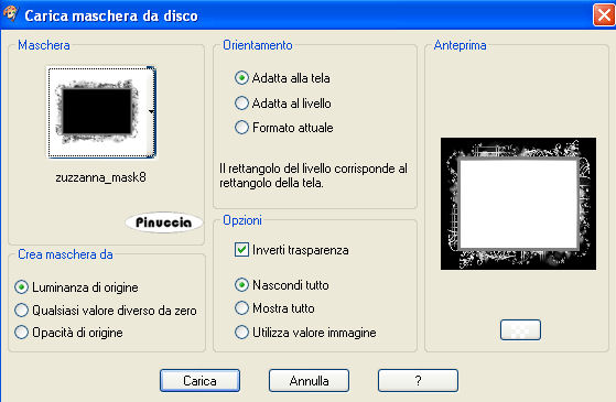 qui puoi trovare qualche risposta ai tuoi dubbi. Se l'argomento che ti interessa non è presente, ti prego di segnalarmelo. Occorrente: Materiale qui. Lo scrapkit usato per questo tutorial fa parte della collezione "Mysterious Scrap Girl" di Azyzam. La maschera è di Zuzzanna . Metti la maschera nella cartella Maschere e apri il resto del materiale in PSP. Apri una nuova immagine bianca 700 x 600 pixels. Livelli>Nuovo livello raster. Selezione>Seleziona tutto. Dallo scrapkit di Azyzam apri Paper 9 e vai a Modifica>Copia. Torna al tuo lavoro e vai a Modifica>Incolla nella selezione. Selezione>Deseleziona. Livelli>Carica/Salva maschera>Carica maschera da disco. Cerca e carica la maschera zuzzanna_ mask 8: ![]() Livelli>Unisci>Unisci gruppo. Apri Raindrops2 e vai a Modifica>Copia. Torna al tuo lavoro e vai a Modifica>Incolla come nuovo livello. Spostalo un po' più in basso.Livelli>Disponi>Sposta giù. Effetti>Effetti 3D>Sfalsa ombra, con i seguenti settaggi, colore nero: ![]() Attiva il livello superiore. Apri Lace2 e vai a Modifica>copia. Torna al tuo lavoro e vai a Modifica>Incolla come nuovo livello. Immagine>Ruota per gradi - 90 gradi a sinistra. ![]() Sposta il nastro a destra,e cancella la parte di nastro che esce dai bordi della maschera. ![]() Livelli>Disponi>Sposta giù. Attiva il livello superiore. Apri Eyelet ribbon 4 e vai a Modifica>Copia. Torna al tuo lavoro e vai a Modifica>Incolla come nuovo livello. Spostalo a sinistra.Effetti>Effetti 3D>Sfalsa ombra, con i settaggi precedenti. Apri Beads ribbon 2 e vai a Modifica>Copia. Torna al tuo lavoro e vai a Modifica>Incolla come nuovo livello. Immagine>Rifletti. Posizionalo in alto.Effetti>Effetti 3D>Sfalsa ombra, con i settaggi precedenti. Apri beadstring4 e vai a Modifica>Copia. Torna al tuo lavoro e vai a Modifica>Incolla come nuovo livello. Spostalo a destra.Effetti>Effetti 3D>Sfalsa ombra, con i settaggi precedenti. Apri il tube e vai a Modifica>Copia. Torna al tuo lavoro e vai a Modifica>Incolla come nuovo livello. Sposta il tube contro il bordo inferiore della cornice.Effetti>Effetti 3D>Sfalsa ombra, con i settaggi precedenti. Livelli>Unisci>Unisci tutto. Sei libero di aggiungere gli elementi che preferisci dallo scrapkit. Aggiungi il tuo nome e/o il tuo watermark. Il font che ho usato per il mio testo è Dracula ![]() Se hai problemi o dubbi, o trovi un link non funzionante, o anche soltanto per un saluto, scrivimi. 13 Ottobre 2008 |