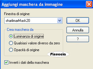qui puoi trovare qualche risposta ai tuoi dubbi. Se l'argomento che ti interessa non è presente, ti prego di segnalarmelo. il titolo prende il nome dall'immagine usata dall'autrice, per utilizzare la quale occorre acquistare una licenza. Occorrente: Un tube a scelta. Il resto del materiale qui La maschera è di Sharlimar. La cornice è di Cordelia. Apri una nuova immagine bianca 600 x 500 pixels. Livelli>Nuovo livello raster. Riempi con un colore scelto dal tube.Io ho usato ##682554. Livelli>Nuovo livello maschera>Da immagine: apri il menu sotto la finestra di origine e seleziona la maschera: ![]() Livelli>Unisci>Unisci gruppo. Apri il tube della cornice "Frame4 by Cordelia", e vai a Modifica>copia. Torna al tuo lavoro e vai a Modifica>Incolla come nuovo livello. Attiva lo strumento Puntatore ![]() e allarga la cornice, come nell'esempio. ![]() Attiva il livello della maschera (gruppo-raster 1). Apri il tube e vai a Modifica>copia. Torna al tuo lavoro e vai a Modifica>Incolla come nuovo livello. Livelli>Duplica. Livelli>Disponi>Sposta su. Attiva lo strumento Gomma ,e cancella il tube in modo che l'angolo in basso a destra della cornice sia visibile. ![]() Attiva il livello inferiore del tube. Effetti>Effetti 3D>Sfalsa ombra, con i seguenti settaggi, colore nero: ![]() Attiva il livello bianco di sfondo. Immagine>Dimensione tela: ![]() Attiva il livello superiore. Apri il tube del nastro "MisfitsScrapz Purple Passion...", e vai a Modifica>Copia. Torna al tuo lavoro e vai a Modifica>Incolla come nuovo livello. Spostalo a destra. Effetti>Effetti 3D>Sfalsa ombra, con i settaggi precedenti. Apri il tube "adorno2" e vai a Modifica>Copia. Torna al tuo lavoro e vai a Modifica>Incolla come nuovo livello. Spostalo sul nastro.Livelli>Duplica. Immagine>Capovolgi. Livelli>Unisci>Unisci tutto. Aggiungi il tuo nome e/o il tuo watermark o un testo a destra. Per il mio testo ho usato il font Curlz. ![]() ![]() ![]() Se hai problemi o dubbi, o trovi un link non funzionante, o anche soltanto per un saluto, scrivimi. 13 Aprile 2008 |