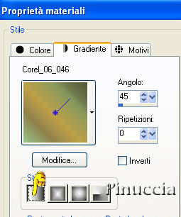 qui puoi trovare qualche risposta ai tuoi dubbi. Se l'argomento che ti interessa non č presente, ti prego di segnalarmelo. Occorrente: Materiale qui Il tube della donna č di @nn. Metti il pennello nella cartella dei pennelli. Attenzione: il pennello č composto da due files che non devono essere separati. Vedi i miei appunti sui pennelli qui Metti il gradiente nella cartella dei gradienti. Metti la cornice nella cartella Cornici-immagine di PSP. Imposta il colore di primo piano con il Gradiente Corel-06-046. ![]() Apri una nuova immagine trasparente 700 x 500 pixels, e riempila con il gradiente.Livelli>Nuovo livello raster. Selezione>Seleziona tutto. Selezione>Modifica>Contrai, di 50 pixels. Apri il tube "Šnn_061007_misted_222_stairs", e vai a Modifica>Copia. Torna al tuo lavoro e vai a Modifica>Incolla>Incolla nella selezione. Attiva il livello inferiore di sfondo. Apri "Overlay rosey" e vai a Modifica>Copia. Torna al tuo lavoro e vai a Modifica>Incolla>Incolla come nuovo livello. Cambia la modalitā di miscelatura di questo livello in Luminanza (esistente). Attiva nuovamente il livello superiore. Apri il tube della donna "Šnn_021007_misted_215_portraiwoman" e vai a Modifica>Copia. Torna al tuo lavoro e vai a Modifica>Incolla>Incolla come nuovo livello. Sposta il tube in basso a sinistra.Immagine>Cornice-immagine, e seleziona la cornice Corel_09-018: ![]() Apri "Corner". Attiva lo strumento Bacchetta magica ![]() e clicca nella parte blu per selezionarla. ![]() Riempi la selezione con il gradiente.se vuoi, prima di riempire con il gradiente, puoi cambiare il settaggio spuntando Inverti. Decidi tu quale č il risultato che preferisci. Selezione>Nessuna selezione. Modifica>Copia. Torna al tuo lavoro e vai a Modifica>Incolla>Incolla come nuovo livello. Sposta l'angolo in alto a destra, contro il bordo bianco.Apri il tube "Hoekstitch" e vai a Modifica>Copia. Torna al tuo lavoro e vai a Modifica>Incolla>Incolla come nuovo livello, vedi l'esempio finale. Livelli>Duplica. Immagine>Capovolgi. Immagine>Rifletti. Sistema il tube nell'angolo interno.![]() Apri "J3-element-fibre", e vai a Modifica>Copia. Torna al tuo lavoro e vai a Modifica>Incolla>Incolla come nuovo livello. Spostalo a destra.Effetti>Effetti 3D>Sfalsa ombra, con i seguenti settaggi, colore nero: ![]() Apri "Largestitch" e vai a Modifica>Copia. Torna al tuo lavoro e vai a Modifica>Incolla>Incolla come nuovolivello. Spostalo in alto a destra, vedi l'esempio.![]() Attiva lo strumento Pennello ![]() cerca e seleziona il pennello MPCs-aren't you already there, Imposta il colore di primo piano con il nero (#000000) e clicca sull'immagine con il tasto sinistro del mouse, per applicare il pennello con il colore di primo piano. se vuoi seguire il mio esempio, io ho attivato lo strumento Gomma ,e - posizionata sul livello dell'immagine di sfondo (le scale: raster 2), ho "pulito" un po' il viso della donna. Aggiungi il tuo nome e/o il tuo watermark. Per il mio testo ho usato il font FUndRunk-Normal, dimensione 48. Livelli>Unisci>Unisci tutto, e salva in formato jpg. ![]() Se hai problemi o dubbi, o trovi un link non funzionante, o anche soltanto per un saluto, scrivimi. 12 Novembre 2007 |