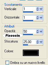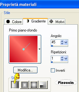 qui puoi trovare qualche risposta ai tuoi dubbi. Se l'argomento che ti interessa non č presente, ti prego di segnalarmelo. Occorrente: Materiale qui Il tube č di Matt Widmann Apri tutto il materiale in PSP, compresa la maschera. Scegli due colori dal tube. Per seguire il mio esempio, imposta il colore di primo piano con #c60014 e il colore di sfondo con #fe7166. Passa il colore di primo piano a Gradiente di primo piano/sfondo, con i seguenti settaggi. ![]() Apri una nuova immagine BIANCA 600 x 600 pixels. Livelli>Nuovo livello raster. Riempi con il gradiente.Livelli>Nuovo livello maschera>Da immagine. Apri il menu sotto la finestra di origine e vedrai l'elenco dei files aperti. Seleziona la maschera Vix Mask155, con i seguenti settaggi. ![]() Effetti>Effetti di bordo>Aumenta. Livelli>Unisci>Unisci gruppo. Effetti>Effetti 3D>Sfalsa ombra, con i seguenti settaggi, colore nero: ![]() Apri il tube con il testo Joy ("Stock xchng" 993012...), e vai a Modifica>Copia. Torna al tuo lavoro e vai a Modifica>Incolla come nuovo livello. Spostalo in basso.Effetti>Effetti 3D>sfalsa ombra, con i settaggi precedenti. Apri il tube Hotcheeks mattwidmann, e vai a Modifica>copia. Torna al tuo lavoro e vai a Modifica>Incolla come nuovo livello. Posiziona il tube adattandolo al testo.Se stai usando il tube fornito con il materiale, posiziona la mano sulla O e i glutei sulla Y. io ho fatto cosė: duplica il livello del testo, nella paletta dei livelli porta il livello del testo duplicato sopra il livello del tube, attiva lo strumento Selezione a mano libera e seleziona la parte del testo da eliminare (se preferisci, puoi anche usare lo strumento Gomma ![]() ![]() Premi sulla tastiera il tasto CANC ![]() ![]() Effetti>Effetti 3D>sfalsa ombra, con i settaggi precedenti. Apri la cornice Frame2 by Cordelia, e vai a Modifica>Copia. Torna al tuo lavoro e vai a Modifica>Incolla ocme nuovo livello. Sposta la cornice in alto a sinistra.Livelli>Disponi>Sposta gių e ripeti in modo che il livello della cornice si trovi sotto quello del testo. Attiva lo strumento Selezione a mano libera e seleziona la parte di cornice dietro il tube.![]() Premi sulla tastiera il tasto CANC. ![]() Effetti>Effetti 3D>Sfalsa ombra, con i settaggi precedenti. Apri il tube DSE-valentine-Hearts e vai a Modifica>Copia. Torna al tuo lavoro e vai a Modifica>Incolla come nuovo livello. Spostalo in basso.Attiva lo strumento Testo , scegli un font e scrivi il tuo nome.Per il mio testo ho usato il font Jazz Poster, dimensione 48. se il tuo tube ha il copyright, non dimenticare di aggiungerlo. Livelli>Unisci>Unisci tutto. Aggiungi, se vuoi, il tuo watermark e salva in formato jpg. ![]() ![]() Se hai problemi o dubbi, o trovi un link non funzionante, o anche soltanto per un saluto, scrivimi. 30 Agosto 2008 |