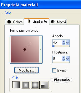 qui puoi trovare qualche risposta ai tuoi dubbi. Se l'argomento che ti interessa non è presente, ti prego di segnalarmelo. Occorrente: Materiale qui I tubes sono di Marif Metti il pennello nella cartella dei Pennelli. fai attenzione: il pennello è composto da due files, che non devono essere separati. Trovi alcuni appunti sui pennelli qui Apri i tubes in PSP. Scegli due colori dal tube: uno scuro come colore di primo piano (io ho usato #7a3a41), e un chiaro come colore di sfondo (io ho usato #ead2ca). Passa il colore di primo piano a Gradiente di primo piano/sfondo, stile lineare: ![]() Apri una nuova immagine trasparente 700 x 500 pixels, e riempila con il gradiente.Attiva il tube di Marif "misted face" e vai a Modifica>copia. Torna al tuo lavoro e vai a Modifica>Incolla>Incolla come nuovo livello. Sposta il tube a sinistra,mantenendo la stessa distanza dai bordi superiore e inferiore. Livelli>Nuovo livello raster. Attiva lo strumento Selezione , rettangolo,![]() e traccia, a destra, tre rettangoli come nell'esempio: ![]() Attiva il tube di Marif "Lady0464" e vai a Modifica>Copia. Torna al tuo lavoro e vai a Modifica>Incolla>Incolla nella selezione. Effetti>Effetti 3D>Sfalsa ombra, con i seguenti settaggi, con il colore scuro di primo piano. ![]() Se stai usando altri tubes con altri colori, dovrai adattare il colore dell'ombra Selezione>Nessuna selezione. Attiva bandLusy e vai a Modifica>Copia. Torna al tuo lavoro e vai a Modifica>Incolla>Incolla come nuovo livello. Sposta il tube in alto a destra, sul primo rettangolo, come nel mio esempio.Livelli>Duplica, e spostalo sul rettangolo centrale.Livelli>Duplica, e spostalo sul rettangolo inferiore.Attiva stitchLusy, e vai a Modifica>Copia. Torna al tuo lavoro e vai a Modifica>Incolla>Incolla come nuovo livello. Sposta la cucitura in alto.Livelli>Duplica. Immagine>Capovolgi. Attiva il livello inferiore. Attiva lo strumento Pennello ![]() cerca e seleziona il pennello hbgbrush-old192 002. Applica il pennello sul bordo in alto con il colore scuro di primo piano, e sul bordo in basso con il colore chiaro di sfondo. Livelli>Unisci>Unisci tutto. Immagine>Aggiungi bordatura, 2 pixels, simmetriche, con il colore scuro. Aggiungi il tuo watermark e/o il tuo nome e salva in formato jpg. Per il mio testo ho usato il font Cocktail Script, dimensione 48 pixels. ![]() Se hai problemi o dubbi, o trovi un link non funzionante, o anche soltanto per un saluto, scrivimi. 14 Gennaio 2008 |
