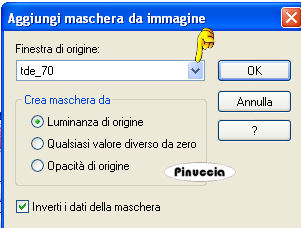 qui puoi trovare qualche risposta ai tuoi dubbi. Se l'argomento che ti interessa non č presente, ti prego di segnalarmelo. Occorrente: Materiale qui Apri tutto il materiale in PSP, compresa la maschera. Apri una nuova immagine bianca 600 x 600 pixels. Scegli un colore dal tube. Io ho usato #f66433. Livelli>Nuovo livello raster. Riempi il livello con il colore arancio #f66433.Livelli>Nuovo livello maschera>Da immagine. Apri il menu sotto la finestra di origine e seleziona tde_70: ![]() Effetti>Effetti di bordo>Aumenta. Livelli>Unisci>Unisci gruppo. Apri la cornice e vai a Modifica>copia. Torna al tuo lavoro e vai a Modifica>Incolla come nuovo livello. Effetti>Effetti 3D>Sfalsa ombra, con i seguenti settaggi, colore nero. ![]() Apri pd-flower 1, e vai a Modifica>copia. Torna al tuo lavoro e vai a Modifica>Incolla come nuovo livello. Spostalo a sinistra, un po' pių in basso.Livelli>Disponi>Sposta gių. Apri pd-flower2, e vai a Modifica>copia. Torna al tuo lavoro e vai a Modifica>Incolla come nuovo livello. Sposta il tube a sinistra, e un po' pių in alto.![]() Attiva il livello superiore. Apri bijtjes( pd-bees), e vai a Modifica>copia. Torna al tuo lavoro e vai a Modifica>Incolla come nuovo livello. Sposta il tube in alto a sinistra.Apri il tube della donna, e vai a Modifica>copia. Torna al tuo lavoro e vai a Modifica>Incolla come nuovo livello. Sposta il tube in basso.Effetti>Effetti 3D>Sfalsa ombra, con i settaggi precedenti. Attiva lo strumento Selezione a mano libera da punto a punto,e seleziona la parte del tube esterna alla cornice: ![]() Premi sulla tastiera il tasto CANC ![]() Selezione>Seleziona tutto. Attiva il livello della cornice. Attiva lo strumento Bacchetta magica , tolleranza a tua scelta (da 25 a 40),e seleziona la parte nera del fiore sulla cornice. ![]() Attiva il livello della donna e premi sulla tastiera il tasto CANC ![]() Selezione>Deseleziona. Attiva lo strumento Testo , scegli due colori dalla tua immagine,e scrivi il tuo nome. Per il mio testo ho usato il font Cocktail script, dimensione 150. Effetti>Effetti 3D>Sfalsa ombra, con i settaggi precedenti. Livelli>Unisci>Unisci tutto. Aggiungi il tuo watermark, e salva in formato jpg. ![]() ![]() Se hai problemi o dubbi, o trovi un link non funzionante, o anche soltanto per un saluto, scrivimi. 6 Giugno 2008 |