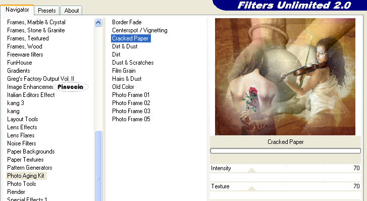 3. Effetti>Plugins>Photo Aging - Cracked Paper - entrambi i valori a 70.