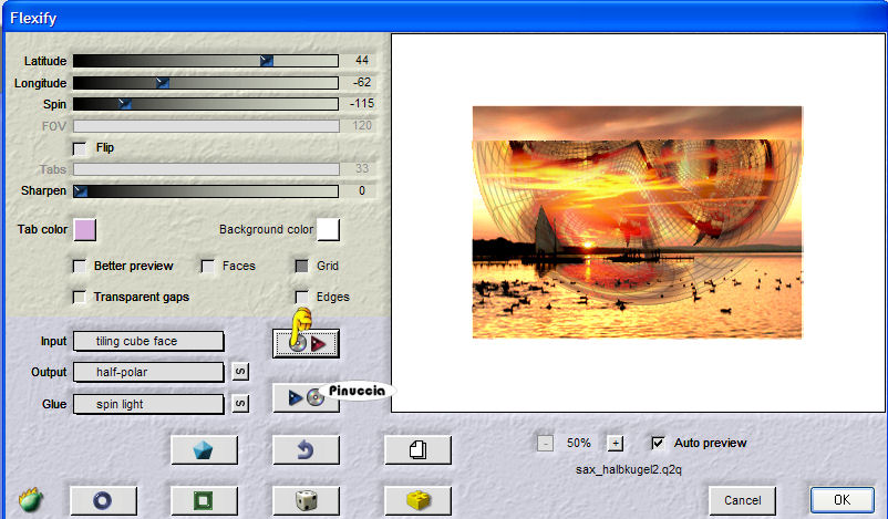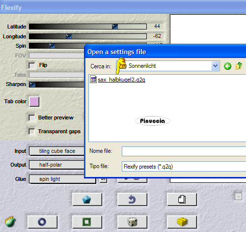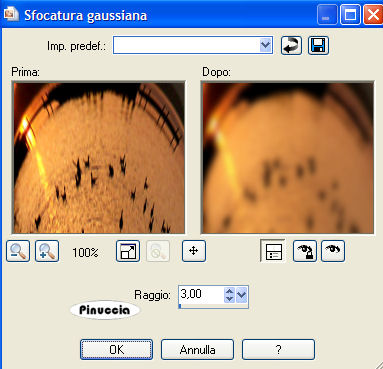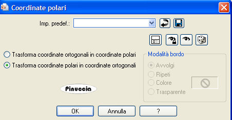qui puoi trovare qualche risposta ai tuoi dubbi. Se l'argomento che ti interessa non è presente, ti prego di segnalarmelo. Questo tutorial è stato scritto e tradotto con PSP X, ma può essere eseguito anche con le altre versioni di PSP. Un ringraziamento agli autori dei tubes Occorrente: Materiale qui Filtro: Flaming Pear Flexify 2 qui Metti il preset sax_halbkugel2.q2q nella cartella dei preset di Flexify. 1. Apri una nuova immagine trasparente 600 x 425 pixels. Selezione>Seleziona tutto. 2. Apri l'immagine Sonne6 e vai a Modifica>copia. Torna al tuo lavoro e vai a Modifica>Incolla nella selezione. Livelli>Duplica. Selezione>Deseleziona. 3. Attiva il livello superiore (il duplicato). Effetti>Plugins>Flaming Pear - Flexify 2: clicca sull'icona indicata dalla manina e cerca il preset sax_halbkugel2.q2q nella cartella dove lo hai salvato. ![]() ![]() Non occorre fare altro. Clicca ok. Effetti>Plugins>FM Tile Tools - Blend Emboss, con i settaggi standard. ![]() Effetti>Effetti 3D>Sfalsa ombra: ![]() Sposta l'immagine in alto vicino al bordo.![]() Cambia la modalità di miscelatura di questo livello in Scurisci e abbassa l'opacità al 50%. ![]() ![]() Se stai usando altre immagini, sperimenta la modalità di miscelatura che più si adatta. 4. Attiva il livello inferiore. Effetti>Effetti di distorsione>Coordinate polari: ![]() Regola>Sfocatura>Sfocatura gaussiana, raggio 3. ![]() 5. Apri il tube con il ponte e vai a Modifica>Copia. Torna al tuo lavoro e vai a Modifica>Incolla come nuovo livello. Spostalo in basso a sinistra.Cambia la modalità di miscelatura di questo livello in Luminanza (esistente) e abbassa l'opacità al 75%. 6. Apri il tube della donna e vai a Modifica>Copia. Torna al tuo lavoro e vai a Modifica>Incolla come nuovo livello. Spostalo a destra.Abbassa l'opacità di questo livello al 75%. 7. Immagine>Aggiungi bordatura, 2 pixels, simmetriche, con un colore scuro preso dall'immagine. Immagine>Aggiungi bordatura, 25 pixels, simmetriche, con un colore chiaro preso dall'immagine. Aggiungi il tuo nome e/o il tuo watermark in un nuovo livello. Livelli>Unisci>Unisci tutto. Salva in formato jpg. ![]() Se hai problemi o dubbi, o trovi un link non funzionante, scrivimi 12 Giugno 2007 |