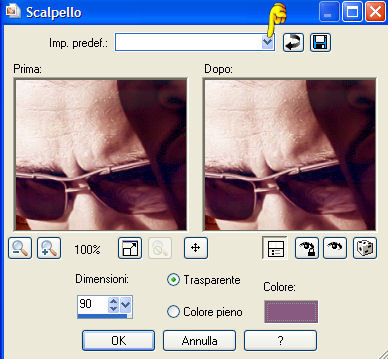 Clicca sul menu delle Impostazioni predefinite e seleziona: Trasparente spesso