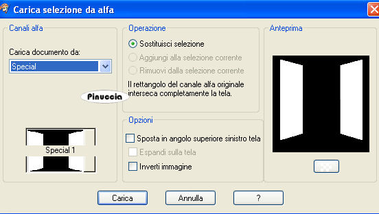 La selezione Special1 è già pronta per essere caricata. Clicca Carica.