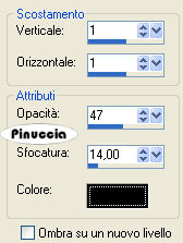 10. Effetti>Effetti 3D>Sfalsa ombra, con i seguenti settaggi, colore nero: