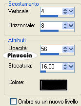 56. Effetti>Effetti 3D>Sfalsa ombra, con i seguenti settaggi, colore nero: