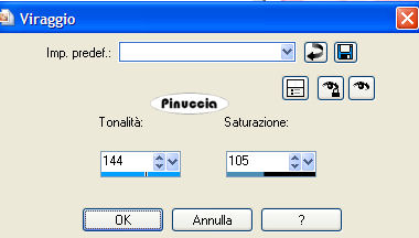 qui puoi trovare qualche risposta ai tuoi dubbi. Se l'argomento che ti interessa non è presente, ti prego di segnalarmelo. Materiale qui Nello zip troverai dei tubes extra, per poter variare le tue immagini. Metti i pennelli nella cartella dei pennelli e apri i tubes in PSP. Se hai problemi sui pennelli, vedi qui Apri una nuova immagine BIANCA 350 x 300 pixels. Livelli>Nuovo livello raster. Imposta il colore di primo piano con un colore rosa: io ho scelto #f5c0d0. Attiva lo strumento Pennello ![]() cerca e seleziona il pennello hbg2003j 001 e applicalo nei quattro angoli dell'immagine. ![]() Livelli>Nuovo livello raster. Selezione>Seleziona tutto. Selezione>Modifica>Contrai, di 30 pixels. Riempi la selezione con un rosa più scuro, io ho scelto #ea4cbb.Selezione>Modifica>Contrai, di 2 pixels. Riempi la selezione con il colore bianco.Selezione>Modifica>Contrai, di 1 pixel. Riempi con il rosa.Selezione>Modifica>Contrai, di 1 pixel. Riempi con il bianco.Mantieni selezionato. Attiva lo strumento Pennello ![]() cerca e seleziona il pennello sr_flowers_025- Applicalo nella selezione con il colore rosa chiaro (f5c0d0). Selezione>Deseleziona. Chiudi il livello di sfondo e attiva uno degli altri due livelli. Livelli>Unisci>Unisci visibile. Copia il livello uniti: posizionato su questo livello vai a Modifica>Copia. Apri una nuova immagine trasparente 600 x 450 pixels e vai a Modifica>Incolla come nuovo livello. Adesso cambia colore al livello. Regola>Saturazione e Tonalità>Viraggio: ![]() Spostalo in alto a destra.Modifica>Incolla come nuovo livello (l'immagine è ancora in memoria). Spostalo a sinistra.Regola>Saturazione e Tonalità>Viraggio: ![]() Modifica>Incolla come nuovo livello, e sposta l'immagine in basso. Sposta le tre immagini a tuo piacimento. ![]() Scegli uno dei tube forniti con il materiale (chiamati comunemente stick (=stecco) tubes) e vai a Modifica>Copia. Torna al tuo lavoro e vai a Modifica>Incolla come nuovo livello. Posiziona il tube, in modo che i piedi tocchino la parte inferiore del bordo rosa.Effetti>Effetti 3D>Sfalsa ombra, con i seguenti settaggi, colore nero: ![]() Attiva il tube del testo e vai a Modifica>Copia. Torna al tuo lavoro e vai a Modifica>Incolla come nuovo livello. Questo rimarrà al suo colore originario. Spostalo in basso.Naturalmente, puoi fare un altro testo a tuo piacimento. Io ho usato il font AbigailsHand, dimensione 80, ma la dimensione dipende dalla lunghezza del testo e della versione di PSP che stai usando. Livelli>Unisci>Unisci tutto. Immagine>Aggiungi bordatura, 1 pixel, simmetriche, con un colore blu. Immagine>Aggiungi bordatura, 1 pixel, simmetriche, con il colore bianco. Immagine>Aggiungi bordatura, 2 pixels, simmetriche, con il colore blu. Aggiungi il tuo nome o il tuo watermark e salva in formato jpg. ![]() ![]() ![]() ![]() Se hai problemi o dubbi, o trovi un link non funzionante, o anche soltanto per un saluto, scrivimi. 10 Marzo 2007 |